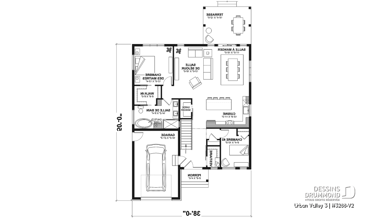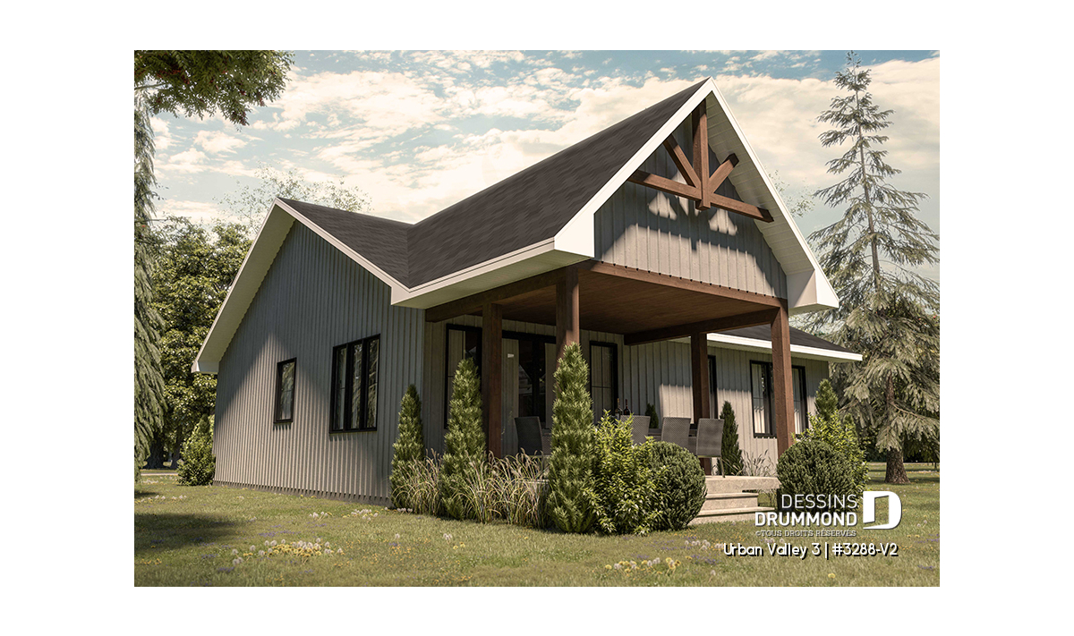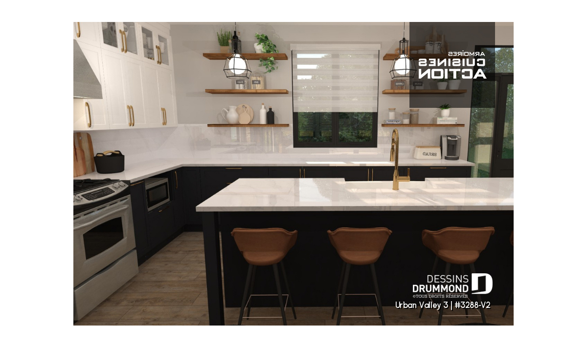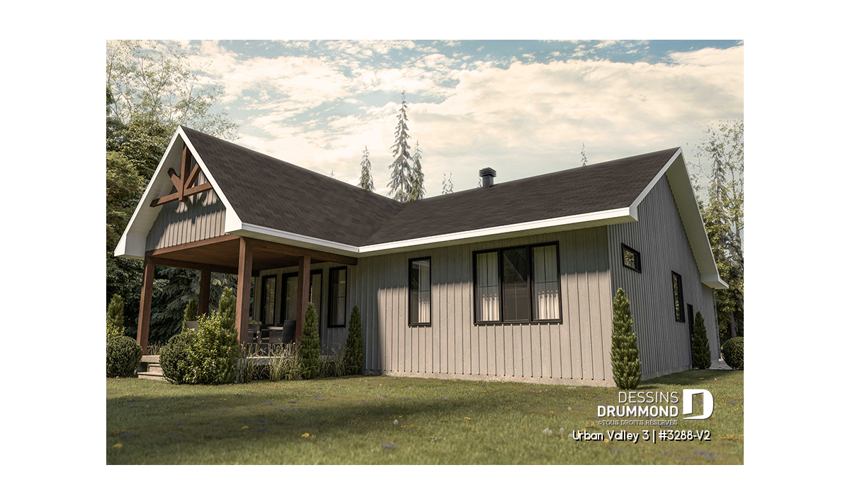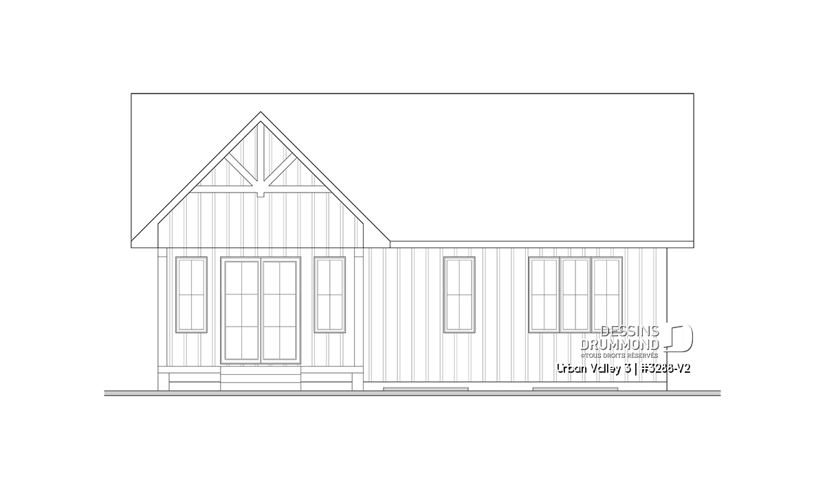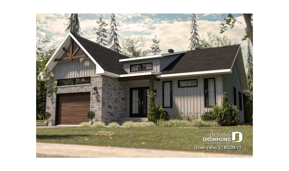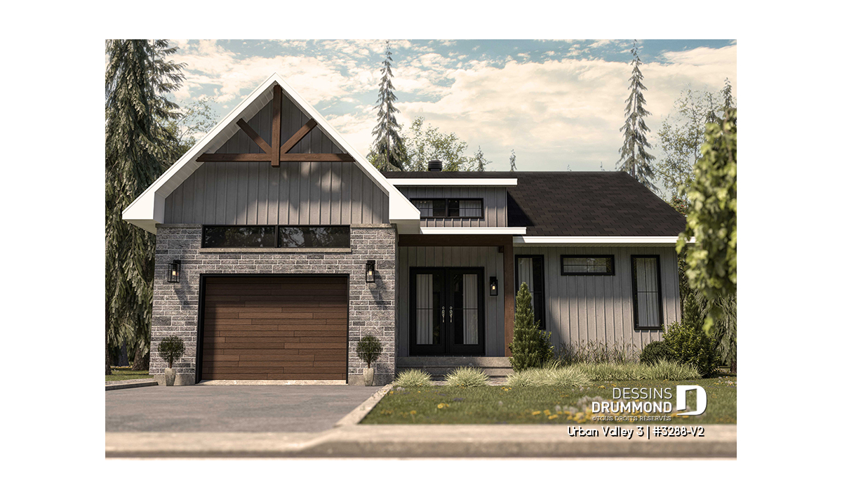 Le plan de maison URBAN VALLEY 3 (#3288-V2) propose 1339 pieds carrés aménagés au rez-de-chaussée. Un sous-sol est prévu et inclus au plan, mais n'est pas aménagé.