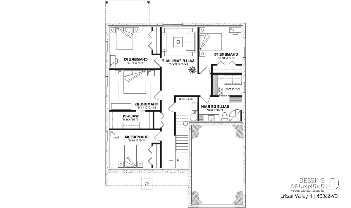 *Si vous souhaitez acheter le plan du sous-sol aménagé, tel que présenté sur la page de ce plan, veuillez sélectionner cette option dans le panier d'achat, dans la section "Sélectionner votre fondation". Si vous ne sélectionnez pas cette option, vous recevrez le sous-sol non fini, sans frais additionnel.