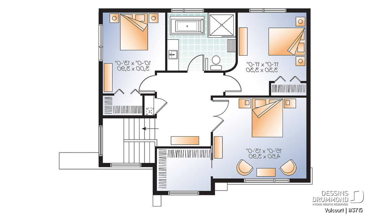 L’escalier abondamment fenêtré nous conduisant à l’étage débouche sur un espace véritablement dégagé duquel on accède à trois belles chambres, dont une chambre des maîtres avec walk-in d’environ 9pi x 7pi, ainsi qu’à une salle de bain proposant un bain autoportant et une douche indépendante de 54po x 48po.