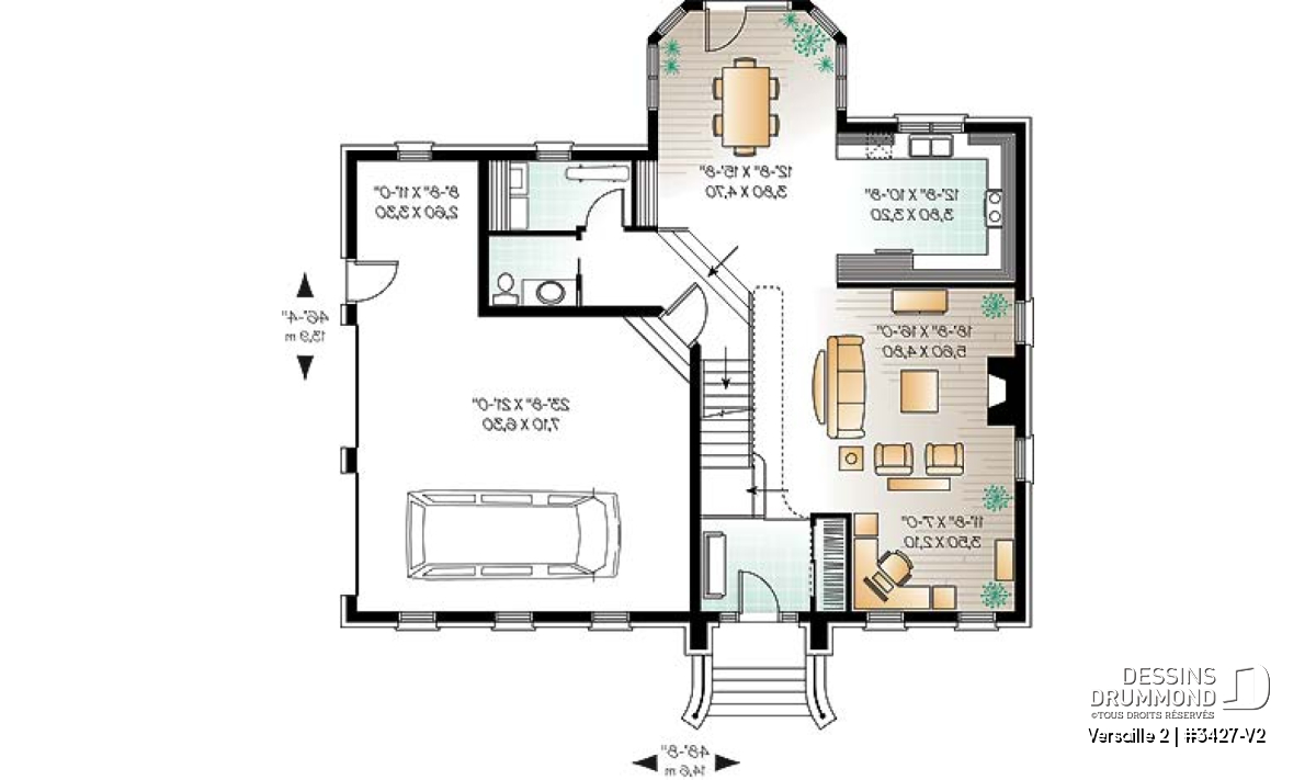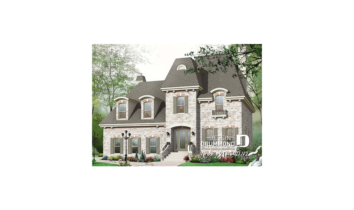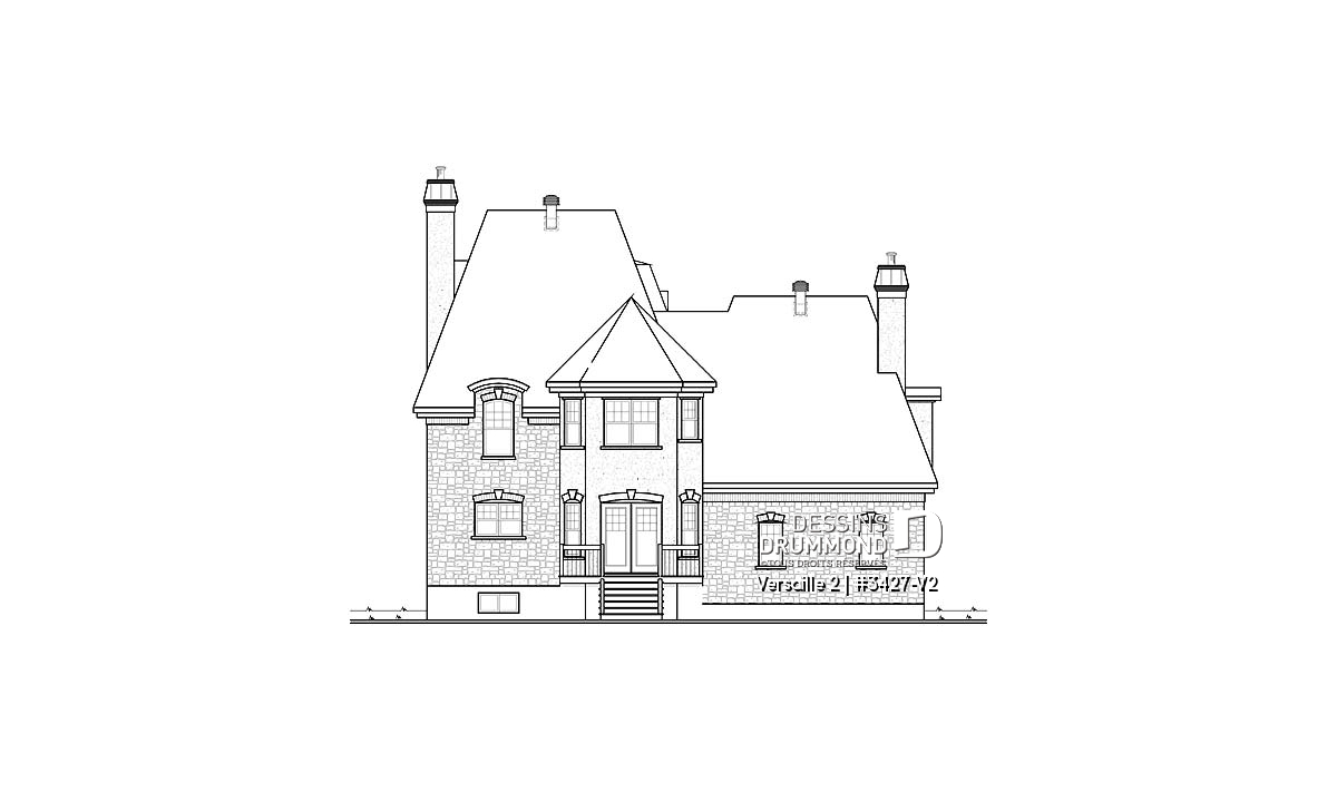 Voilà effectivement une version agrandie du petit manoir no3427 de Dessins Drummond et pour laquelle on est en mesure d’apprécier, d’abord et avant tout, une toute nouvelle envergure du modèle.
