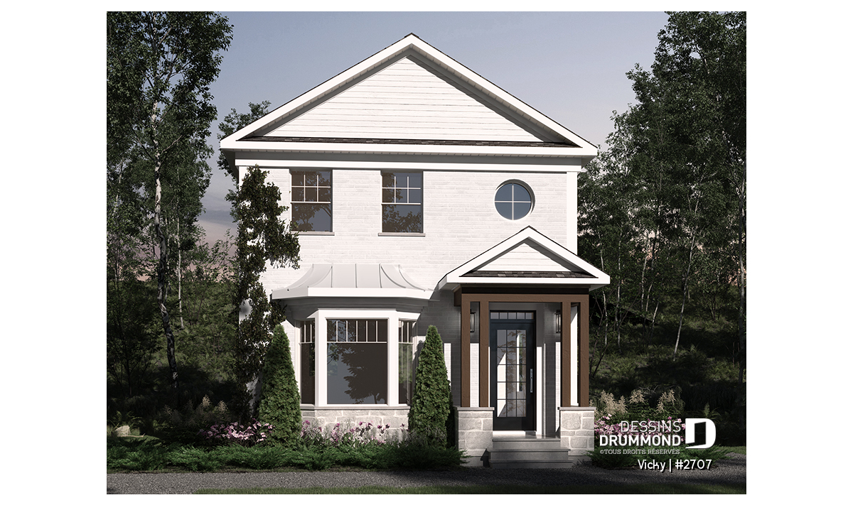 Petite maison d'inspiration victorienne moderne, très attrayante pour les terrains étroits.