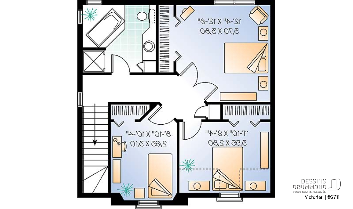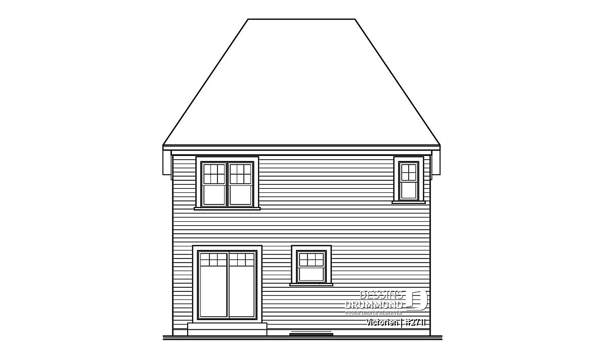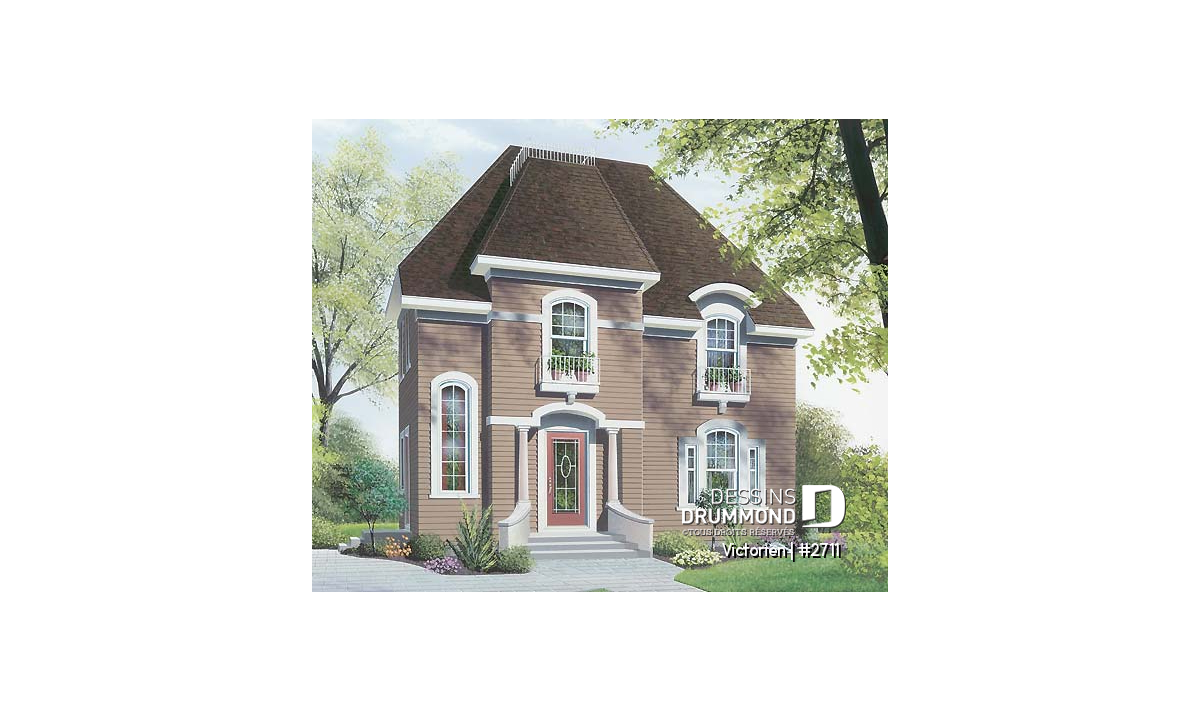 Plan de maison inspiration victorienne, 3 chambres, salle dîner formelle, garde-manger, fenestration spéciale