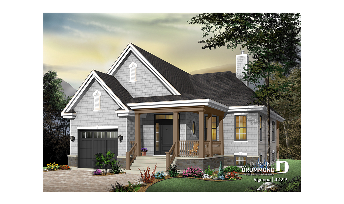 Découvrez le plan de maison VIGNEAU (#3219) plain-pied de style Cape Cod avec garage, conçu pour répondre aux besoins des familles québécoises en quête de confort et d’authenticité. Avec son extérieure champêtre et chaleureux, cette demeure se distingue par son élégante galerie avant qui invite à la détente et son charme intemporel qui s’harmonise parfaitement aux paysages du Québec.