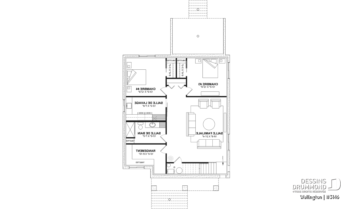 *Si vous souhaitez acheter le plan du sous-sol aménagé, tel que présenté sur la page de ce plan, veuillez sélectionner cette option dans le panier d'achat, dans la section "Sélectionner votre fondation". Si vous ne sélectionnez pas cette option, vous recevrez le sous-sol non fini, sans frais additionnel.