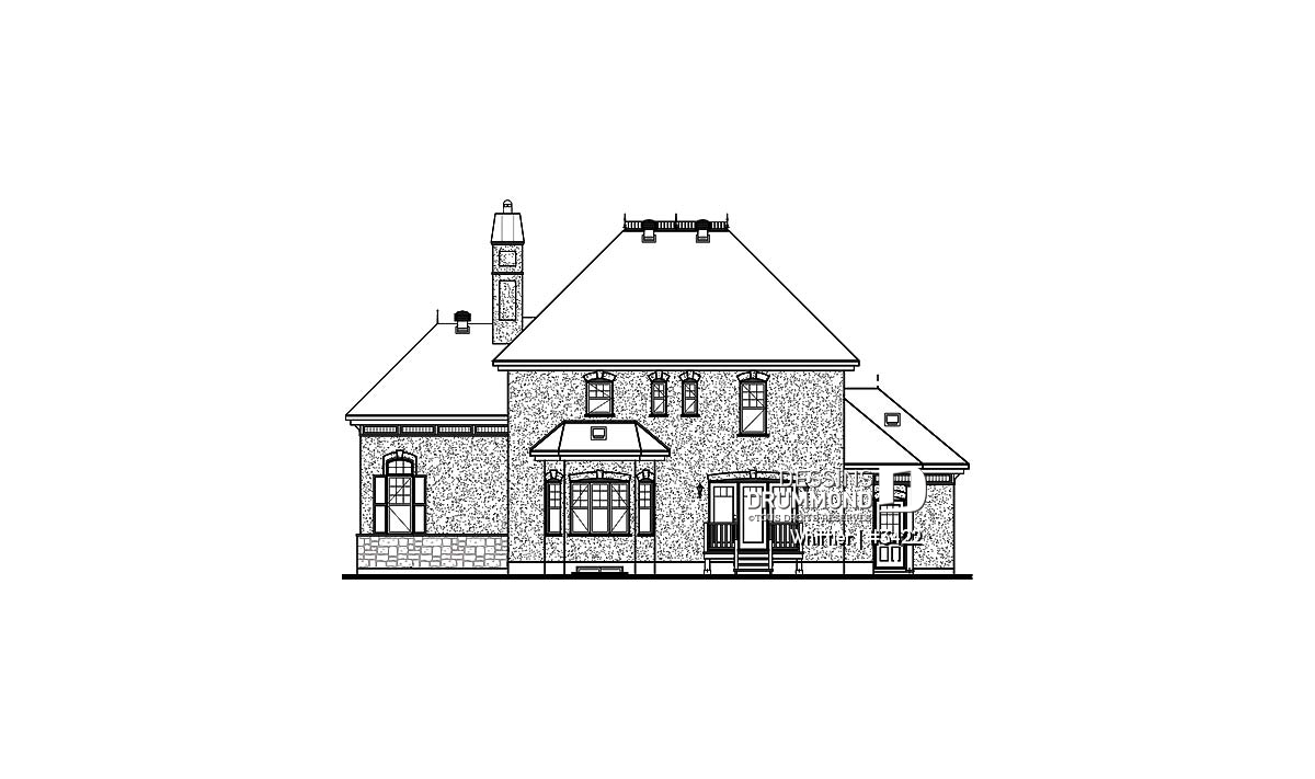 Plafond à 9 pi. au rez-de-chaussée, plafond à 12pi à la salle familiale, bureau à domicile dans la tourelle, foyer monumental ouvert sur deux côtés tout comme l'escalier à sa base.