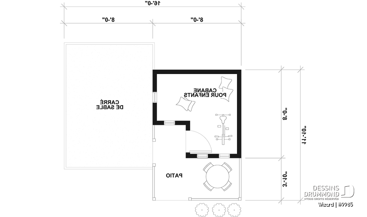 Plan de petite maisonnette pour enfant de 8'-0" x 8'-0", perron non inclus.