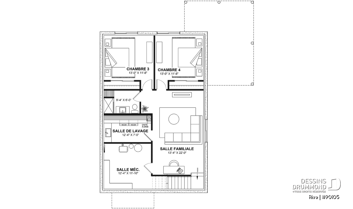 *Si vous souhaitez acheter le plan du sous-sol aménagé, veuillez sélectionner cette option dans le panier d'achat, dans la section "Sélectionner votre fondation". Si vous ne sélectionnez pas cette option, vous recevrez le sous-sol non fini, sans frais additionnel.