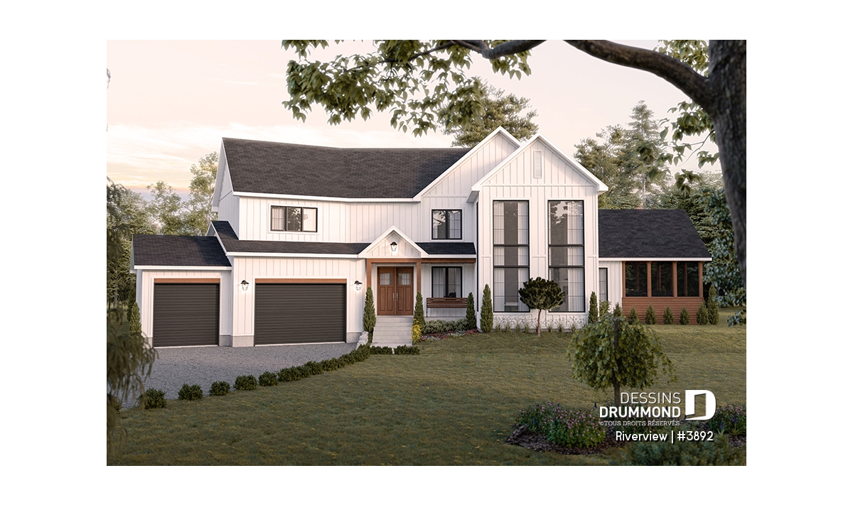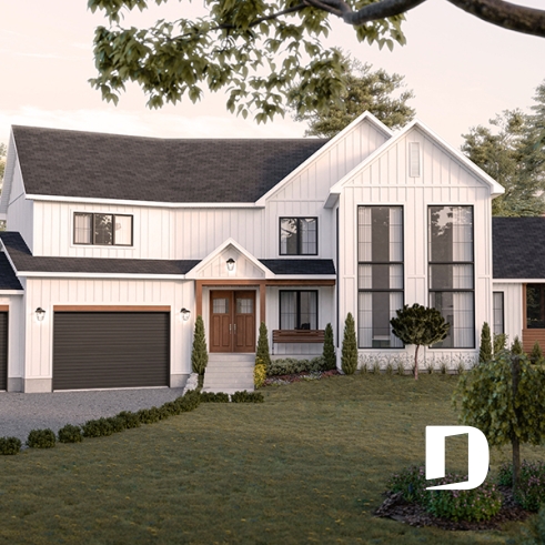 Le plan de maison Riverview (#3892) incarne à merveille l’équilibre entre le charme intemporel du style Farmhouse et les aménagements modernes recherchés par les familles d’aujourd’hui. Accueillante, lumineuse et généreusement proportionnée, cette maison a été conçue pour offrir un confort durable et une qualité de vie exceptionnelle, autant au quotidien que lors des moments de rassemblement.