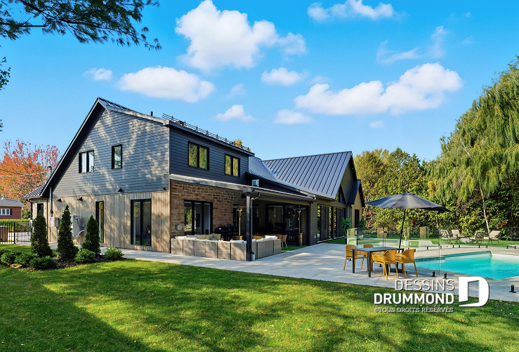 Modèle de farmhouse moderne, 3 à 5 chambres, bureau avec accès pratique de l'extérieur (et de l'intérieur) ainsi qu'un spacieux garage double!