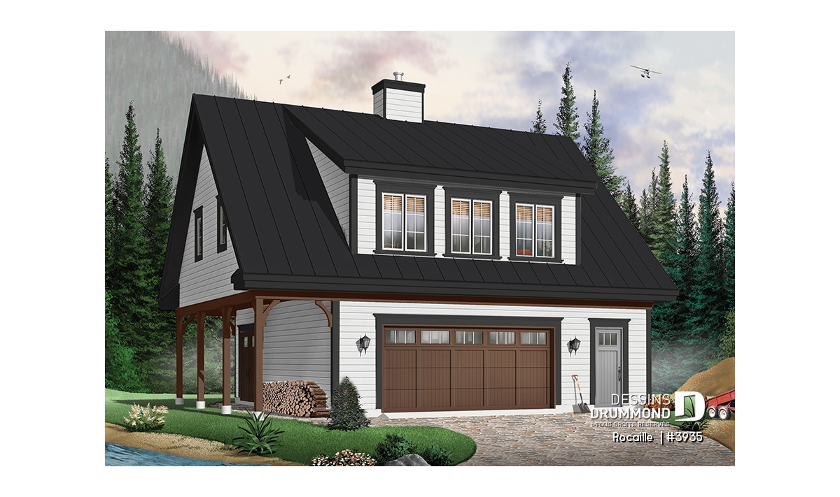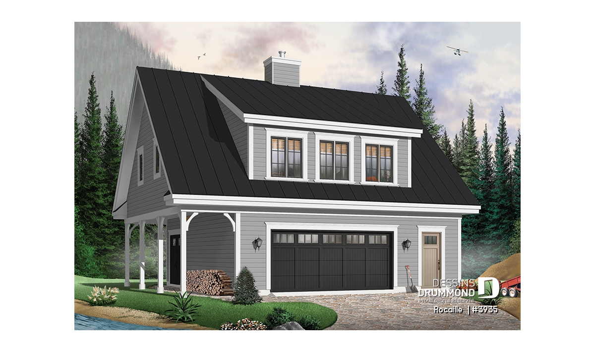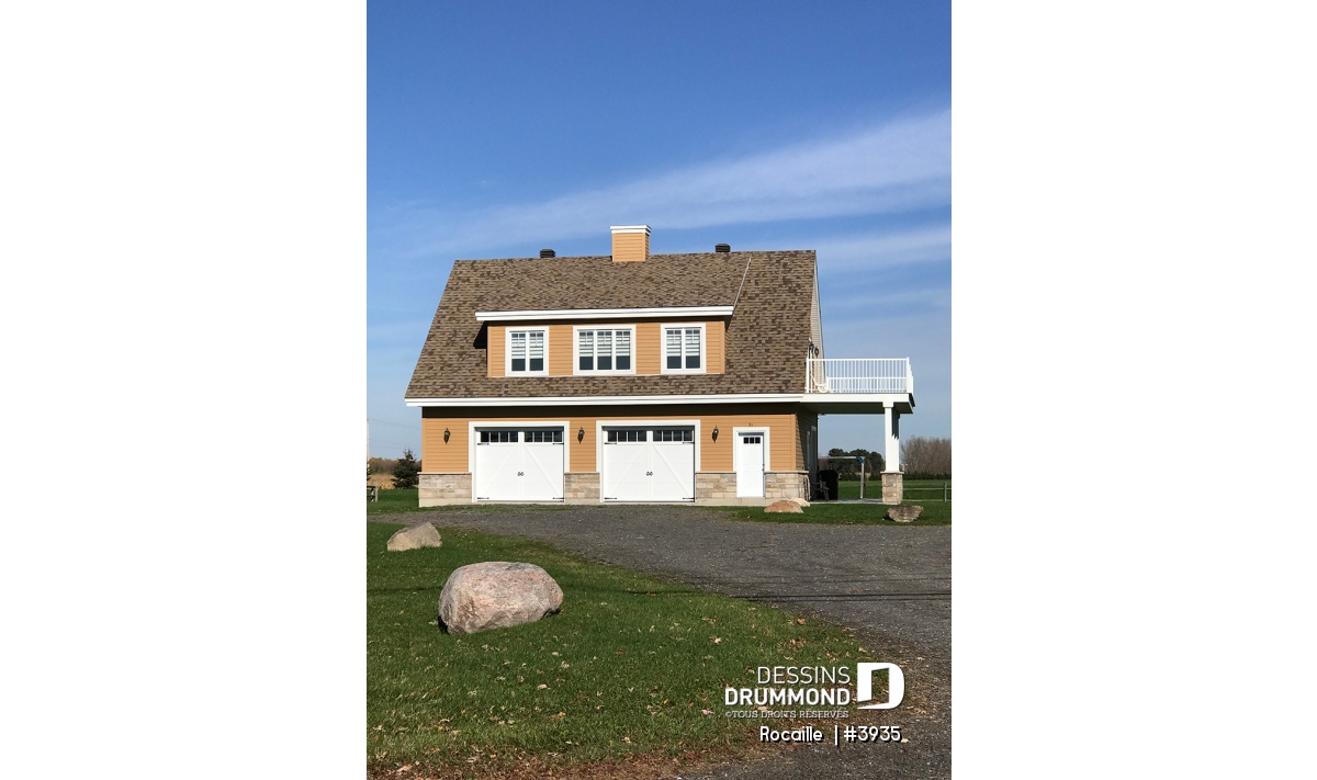 À l’instar de quelques autres logements/garages comme les 2931, 2933, 3932 et 3933 que vous pouvez visualiser sur notre site dessinsdrummond.com, cet habitat est de plus en plus populaire auprès d’une clientèle à la recherche de plus de logement sur un grand terrain ou de la clientèle de pêcheurs et chasseurs, étant donné le rangement important qu’il suggère au rez-de-chaussée et la possibilité d’y loger quelques tout-terrains, bateau et plusieurs accessoires.