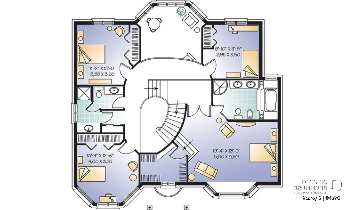 Fenestration abondante et spéciale, magnifique escalier centralisé, faux balcon à l'étage, éviers double dans la salle de bain des maîtres, majestueuses colonnes à l'entrée principale, jeux de volume au plafond.