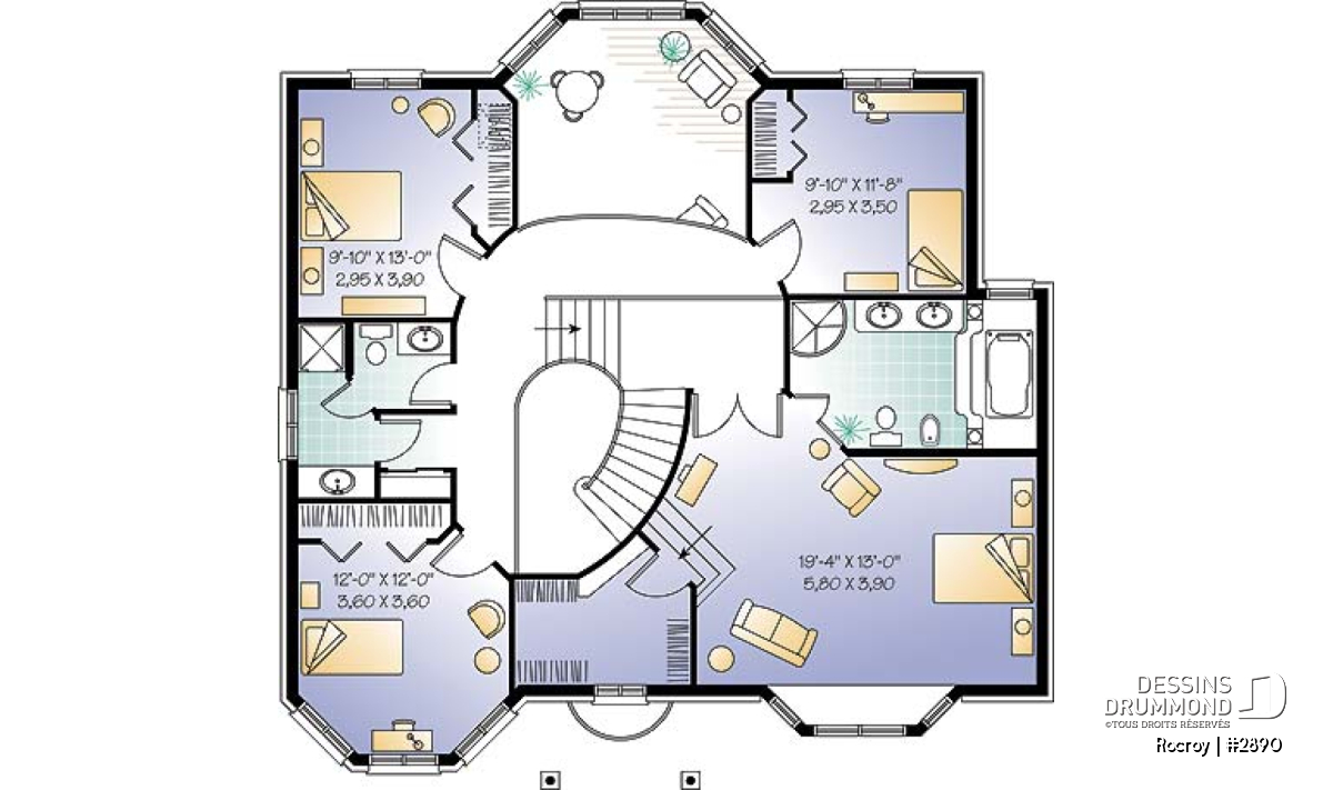 Fenestration abondante et spéciale, magnifique escalier centralisé, faux balcon à l'étage, éviers double dans la salle de bain des maîtres, majestueuses colonnes à l'entrée principale, jeux de volume au plafond.