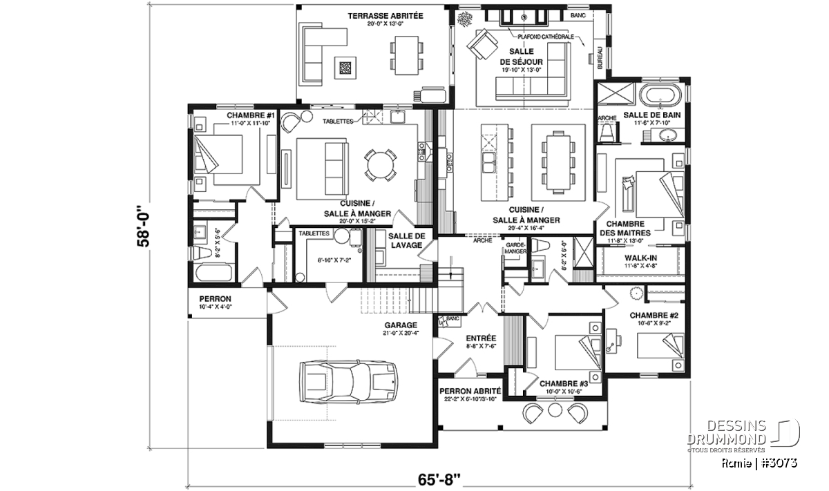 Largeur 65'8" Profondeur 58'0"