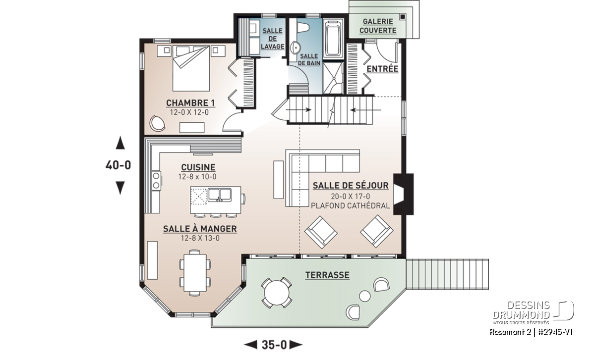 Après la réalisation de quelques modèles similaires au plan 2945 comme ce 2945A qui se veut une inversion parfaite du 2945 ou bien ce 2945A-V1 qui propose l’ajout d’un garage au 2945A, voici le 2945-V1 pour lequel on a ajouté tout près de 200 pi2 que l’on a consacrés à l’agrandissement de presque toutes les pièces intérieures.