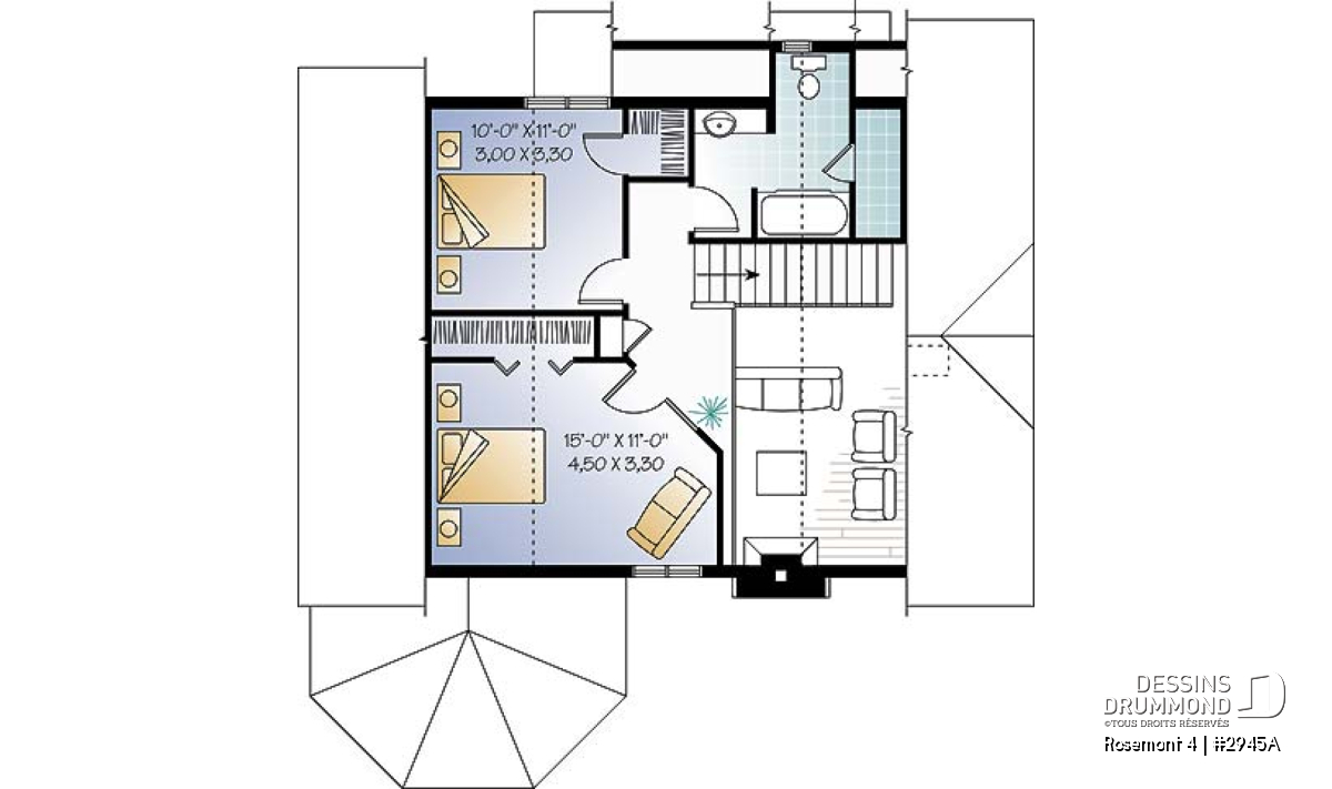 À l’intérieur, l’aménagement des espaces se veut aussi des mieux adapté au panorama. Au rez-de-chaussée, par exemple, la vaste salle de séjour comme la cuisine et la salle à manger ont une vue imprenable sur l’arrière souvent meublé par un lac ou une rivière. Sur ce même plancher, la chambre des maîtres n’est pas en reste en suggérant elle aussi une vue sur le panorama par le biais d’une fenêtre stratégique aménagée à angle sur le côté. À l’étage, deux belles chambres, dont une avec vue sur l’arrière, partagent le plancher avec une petite mezzanine, dégageant ainsi le plafond cathédrale de la salle de séjour. De plus, une salle de bain, avec toilette en cabine, complète le tout pour le plus grand bonheur des propriétaires et de leurs visiteurs.