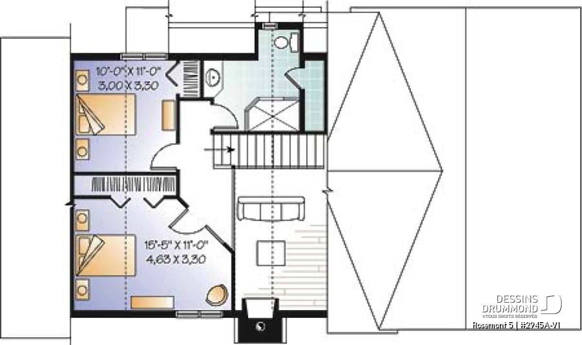 L'espace boni aménageable est généralement prévu au-dessus du garage et il est accessible de la maison. Comme il est prévu aménageable, il pourra devenir un bureau, un espace buanderie, une salle de bain, un coin bibliothèque ou même une chambre additionnelle pour laquelle les propriétaires devront s'assurer d'avoir une fenêtre conforme aux normes en vigueur. De plus, la finition de cette espace boni est toujours INCLUSE dans nos estimation du coût de construction, sauf si avis contraire dans les sections « Description et/ou Éléments descriptifs » de la page du plan.