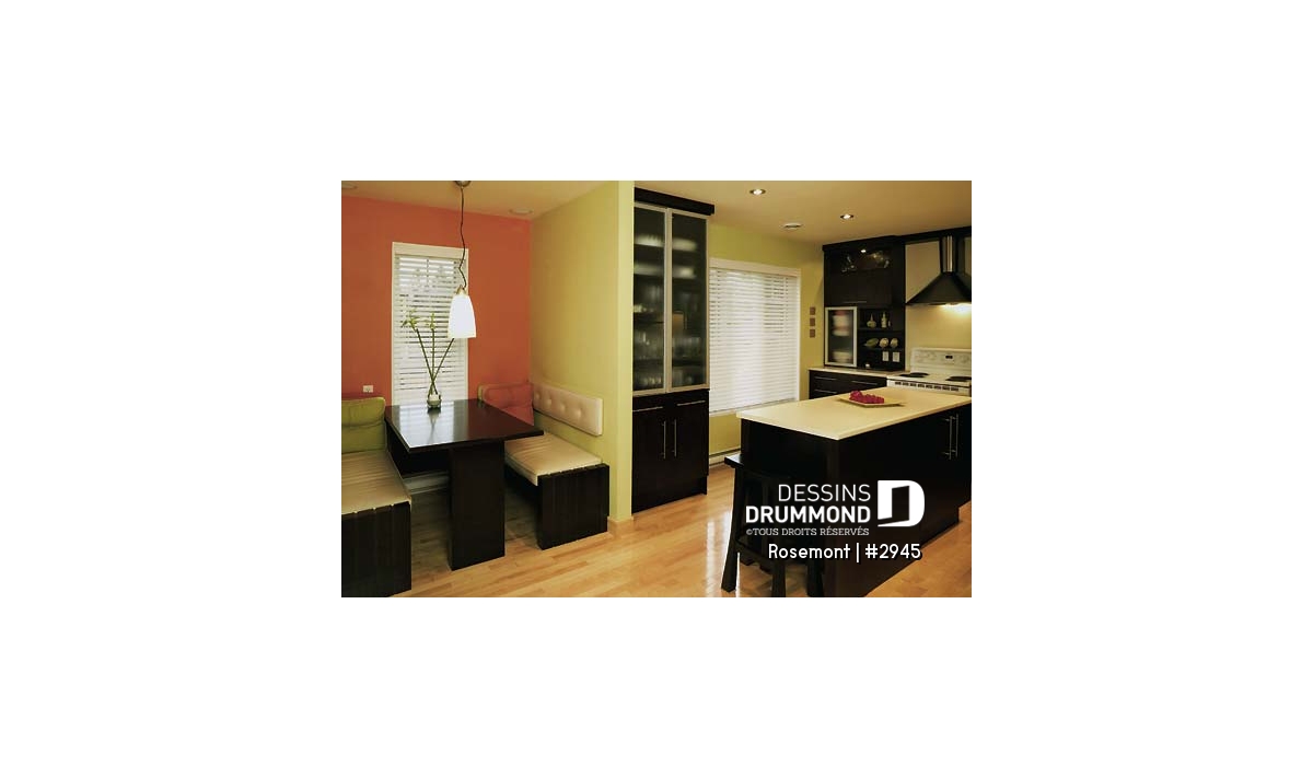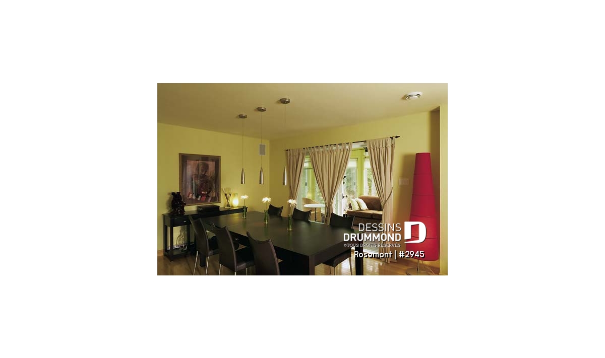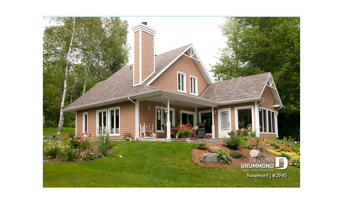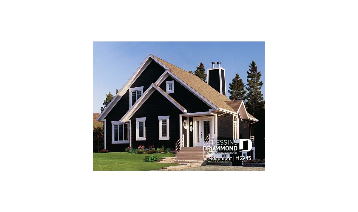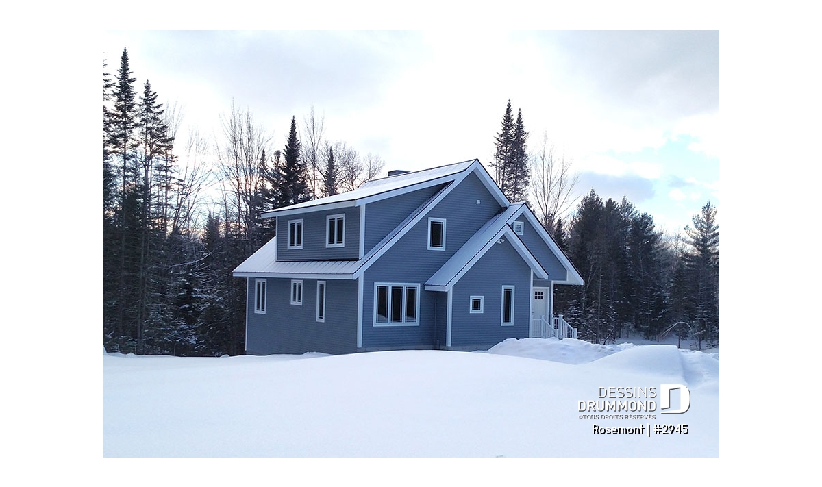 D’abord, un extérieur à la fois simple et suffisamment attrayant offrant un abri intéressant à la porte principale, un foyer des mieux localisés pour s’y attarder tout en conservant une vue sur le panorama, une fenestration adéquate et, finalement, un espace véranda muni de moustiquaire et permettant ainsi de beaucoup mieux profiter de l’été.