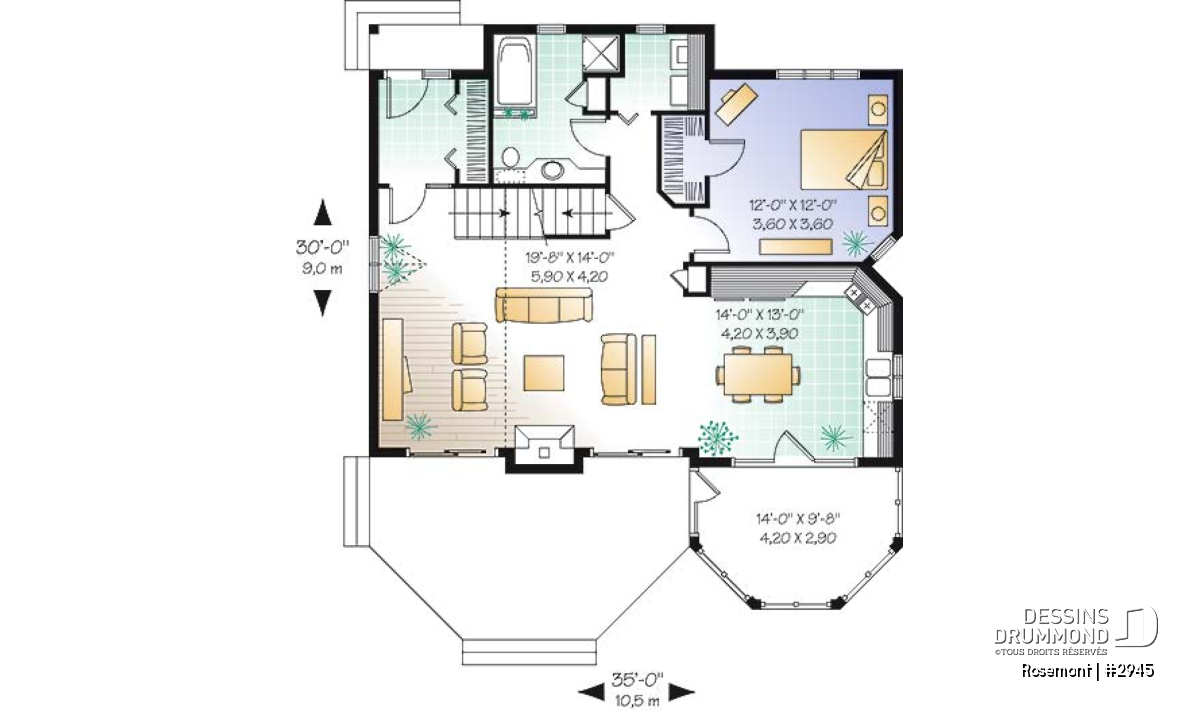 Abri moustiquaire, Foyer, Plafond cathédrale, Mezzanine, Salle de lavage au rez-de-chaussée, Walk-in ch. maîtres, Suite des maîtres au rdc, Aire ouverte, Vestibule, Bain et douche séparés
