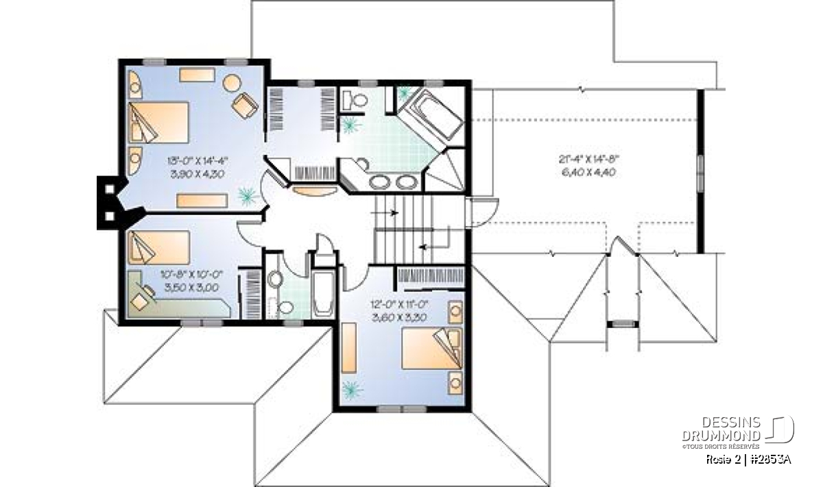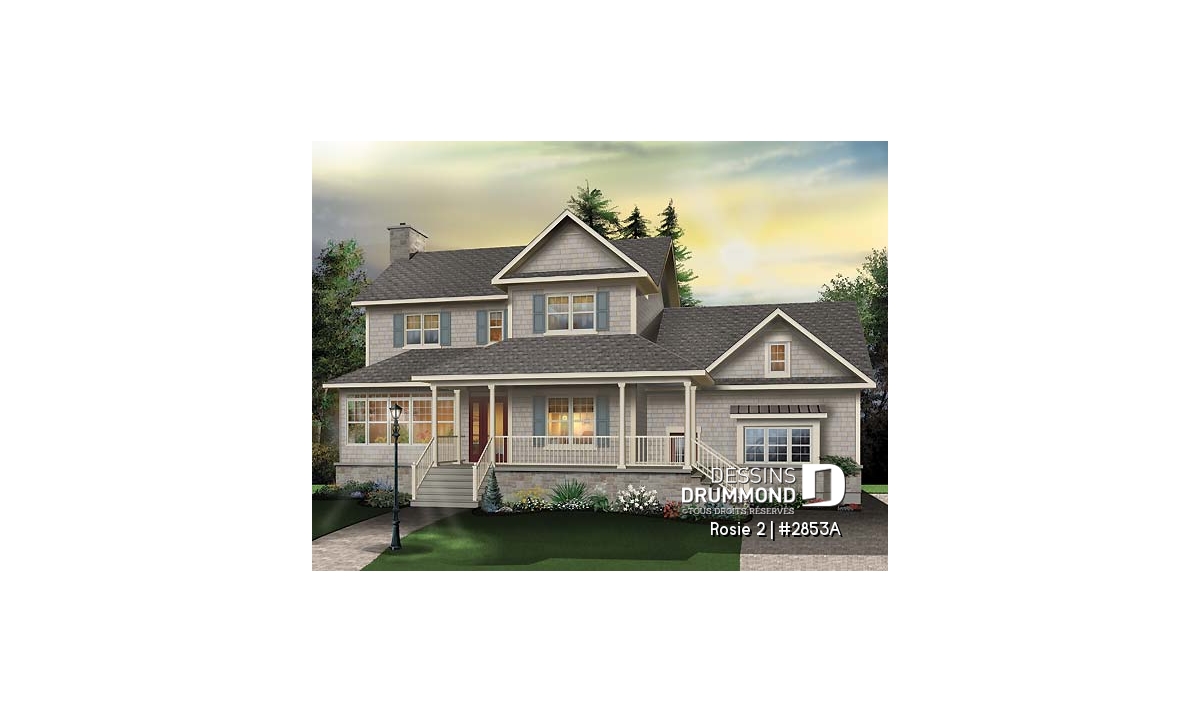 Probablement le modèle de Dessins Drummond qui plait le plus des deux côtés de la frontière Canado-américaine, ce modèle se veut tout d’abord élégant avec sa grande galerie en façade, ses toitures simplifiées et ses ouvertures bien balancées et discret de la façon dont il dissimule si bien son garage double.