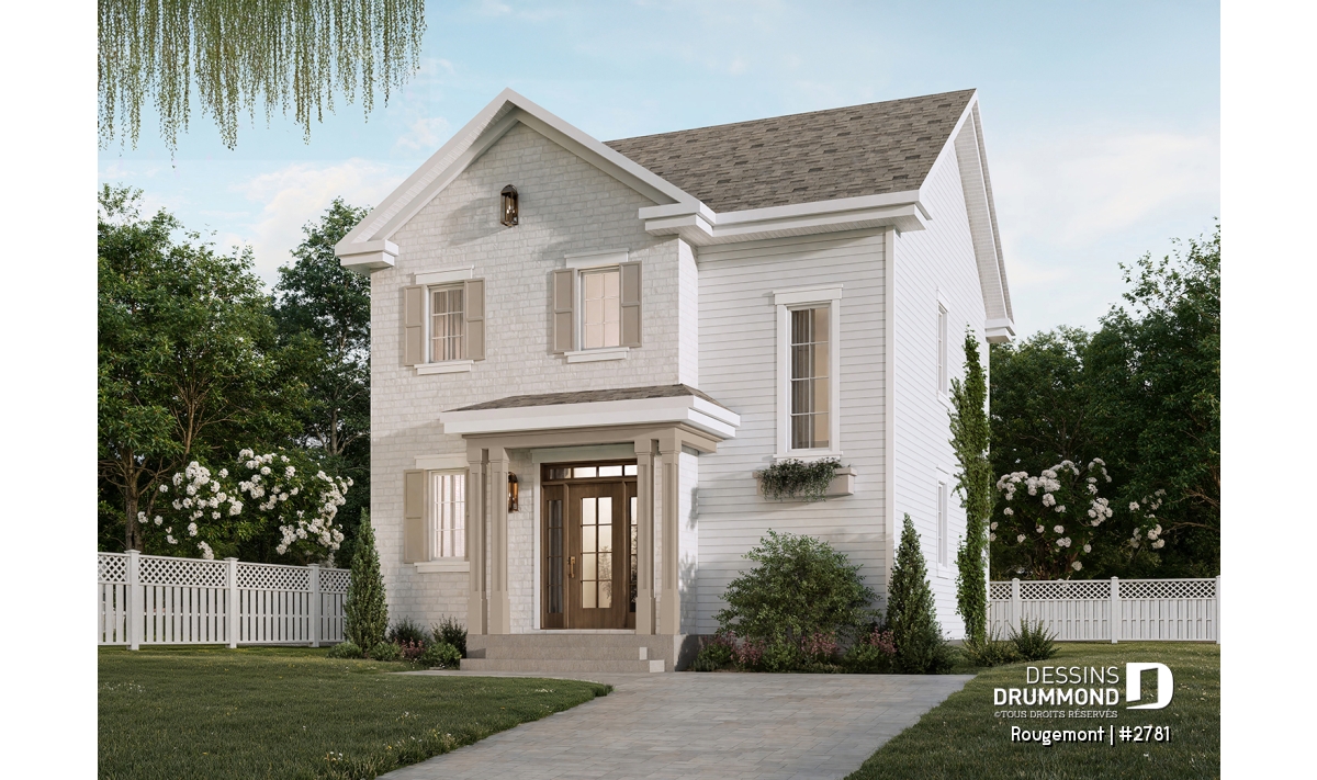 Découvrez le plan de maison à étage ROUGEMENT d’inspiration cottage anglais, parfait pour les familles d’aujourd’hui en quête de charme et de fonctionnalité. Son architecture au style intemporel s’intègre harmonieusement dans les paysages québécois, tandis que son aménagement intérieur moderne répond aux besoins actuels des propriétaires.