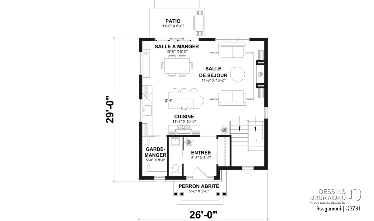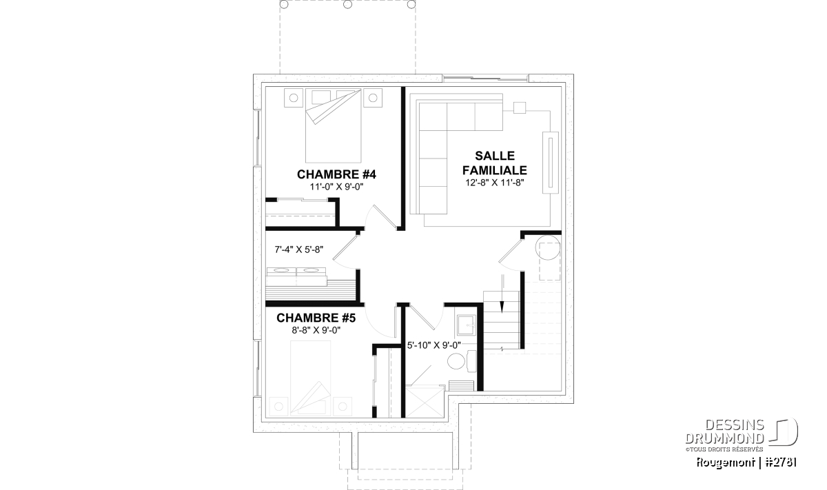 *Si vous souhaitez acheter le plan du sous-sol aménagé, tel que présenté sur la page de ce plan, veuillez sélectionner cette option dans le panier d'achat, dans la section "Sélectionner votre fondation". Si vous ne sélectionnez pas cette option, vous recevrez le sous-sol non fini, sans frais additionnel.