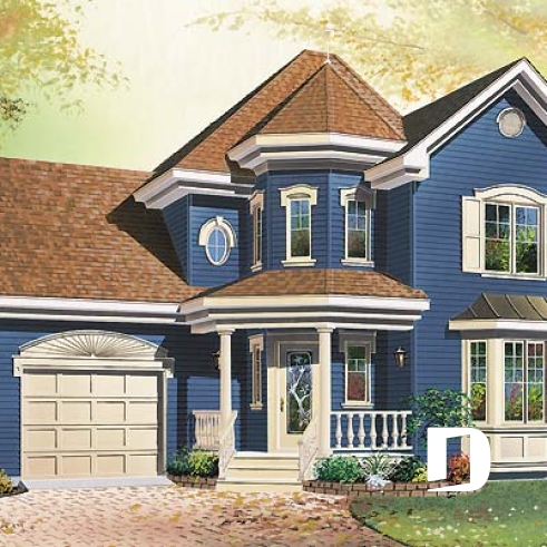 Doté d’un cachet particulier, ce cottage offre à la fois une tourelle, une galerie en parfaite harmonie avec celle-ci, une fenestration généreuse et une certaine mouluration sans compter un garage bien intégré avec espace boni au-dessus.