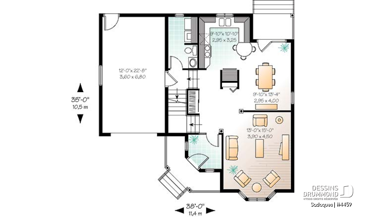 À l’intérieur, un vestibule suffisamment grand s’ouvre sur de beaux espaces tout en côtoyant un vestiaire bien localisé entre les deux entrées principales de la maison. Une salle de séjour de bonnes dimensions se veut des plus logeables alors que le secteur cuisine/dînette/salle à manger est des plus fonctionnels. À noter ici, un espace abrité (par le volume étage) à l’arrière pour de petits lunchs à l’abri des intempéries ou d’un soleil trop chaud.
