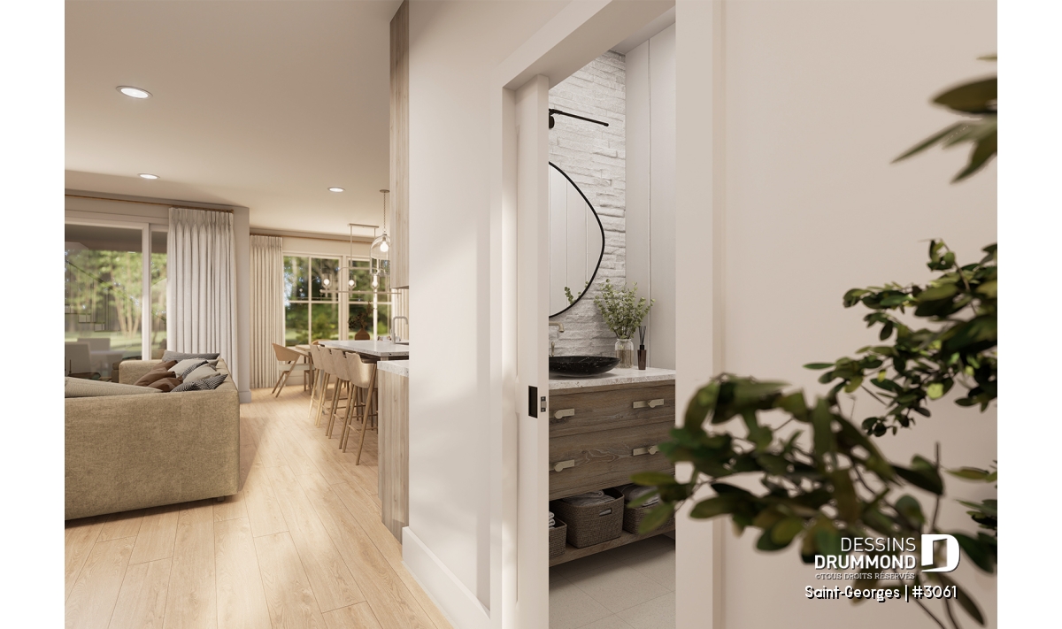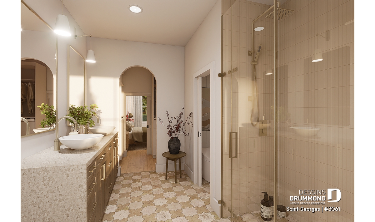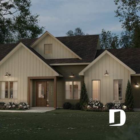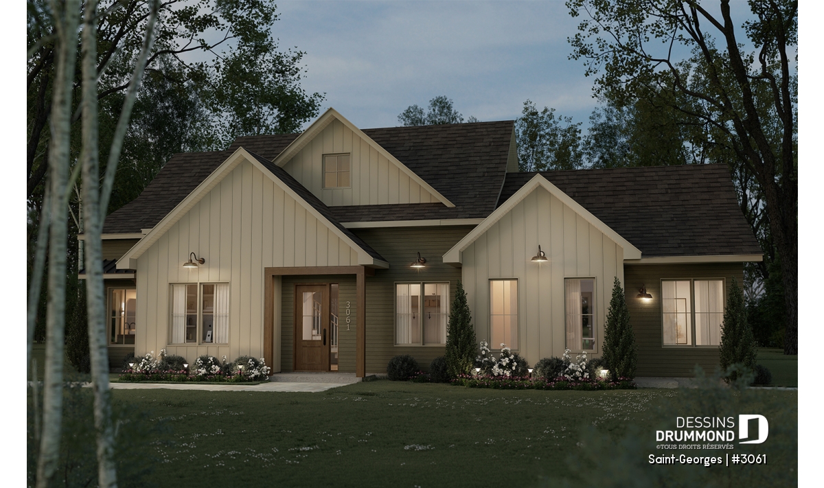Le plan de la maison SAINT-GEORGES (#3061) propose une élégante résidence intergénérationnelle de style farmhouse, offrant 2 925 pi² d’espace habitable répartis sur deux niveaux. Pensée pour les familles qui souhaitent réunir les générations sous un même toit, cette maison allie confort, intimité et esthétisme.