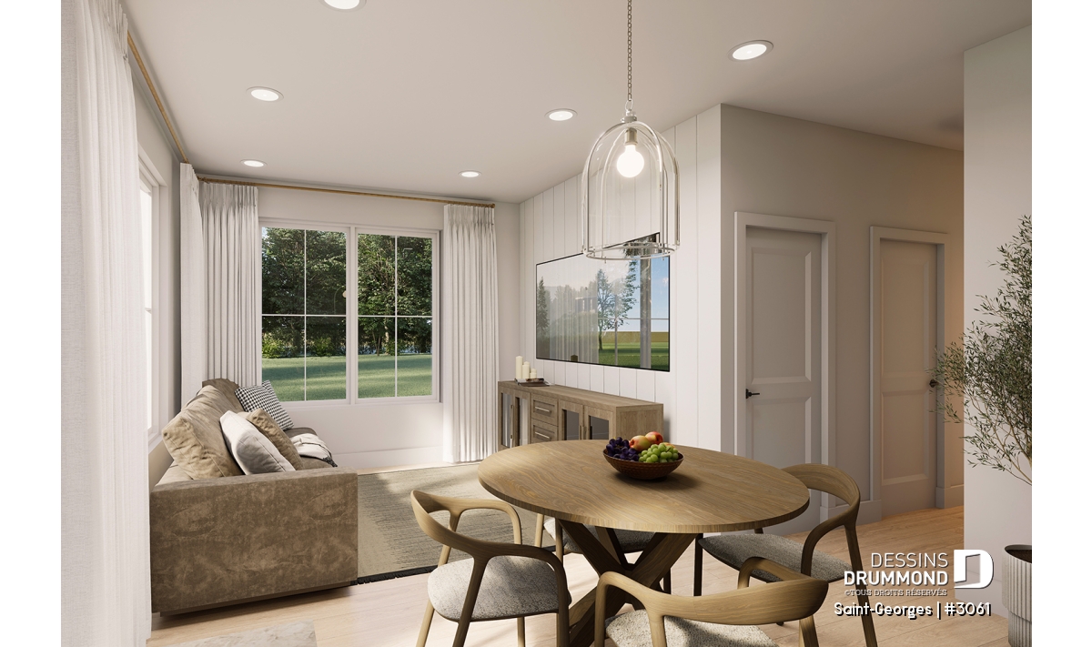 Ce secteur bénéficie d’une belle luminosité naturelle grâce à la porte-patio double.