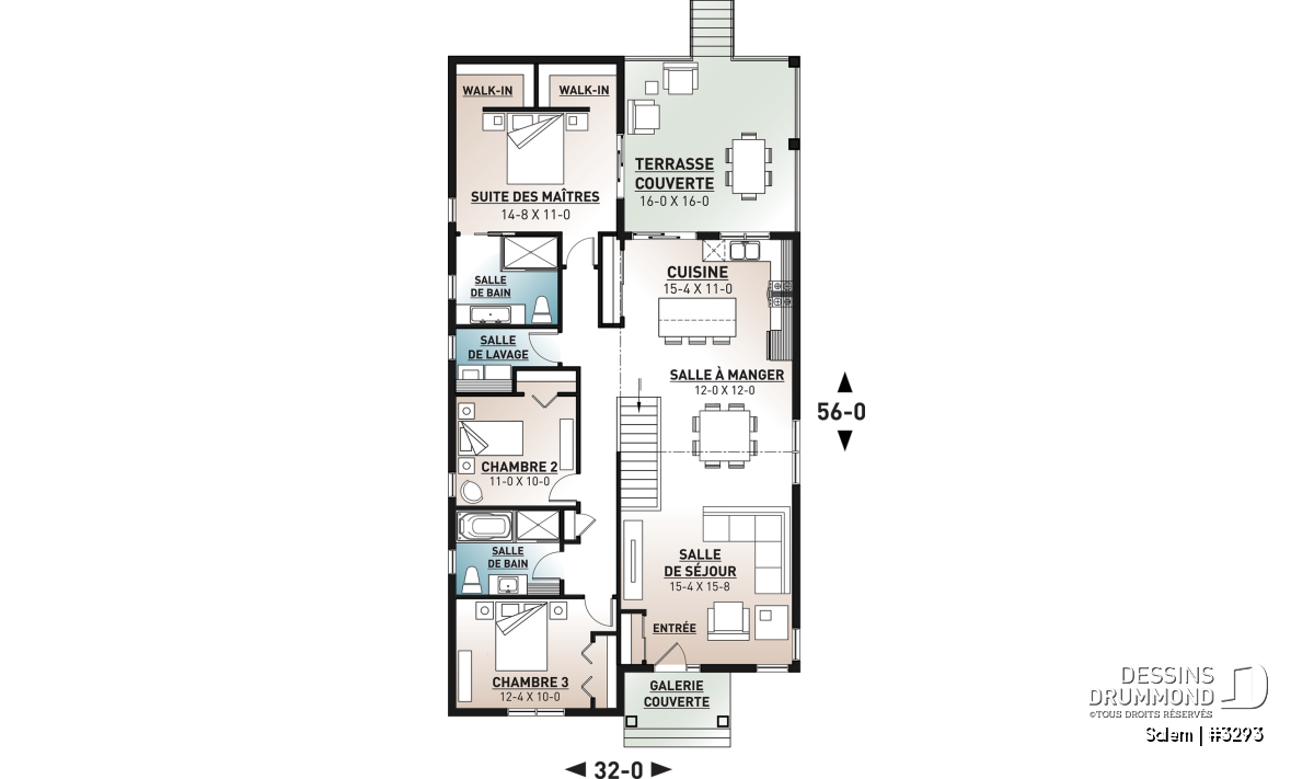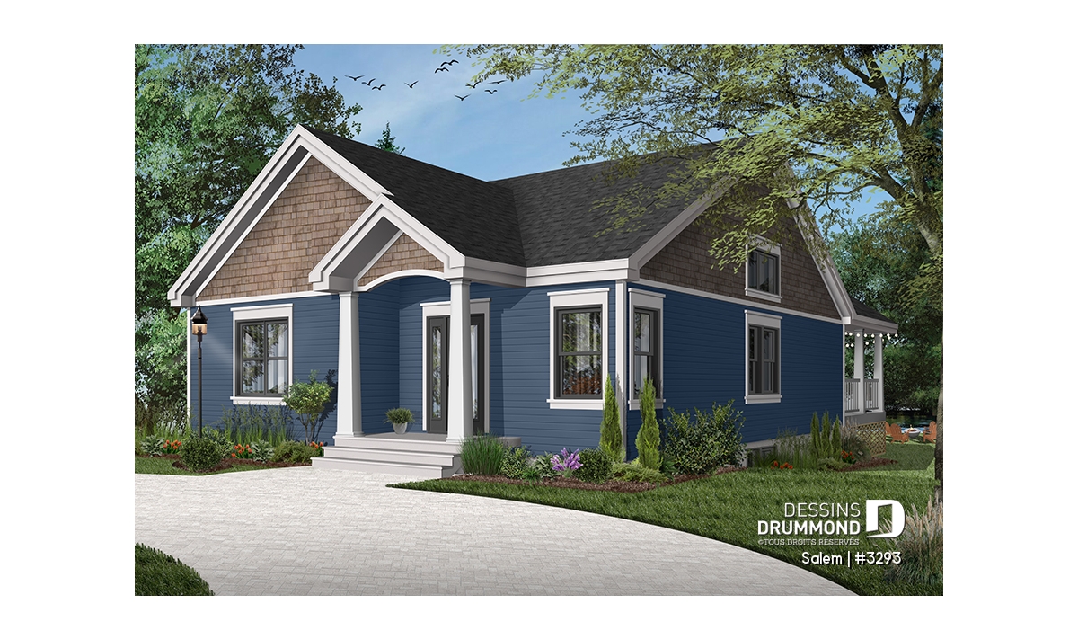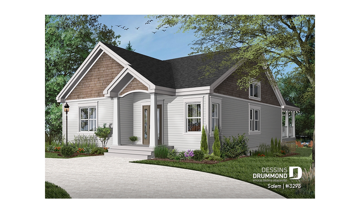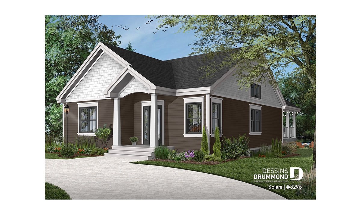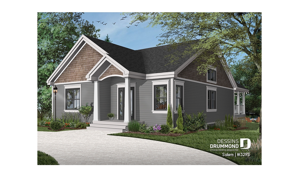 Ce plan de maison de plain-pied au style tendance moderne rustique, plan no. 3293 aussi nommé Salem, propose un format idéal pour les terrains étroits. De plus, avec ses 32 pieds de façade, il comporte beaucoup de commodités recherchées par les familles ou les gens à la recherche d’une maison avec espace pour bureau à domicile!