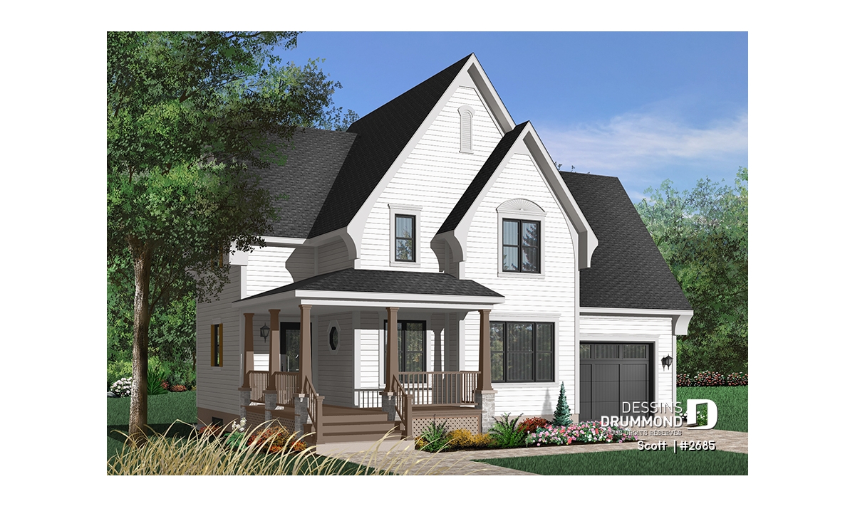 Avec ses pignons élancés, sa galerie de six à sept pieds de profondeur courant sur deux façades et un ensemble de volumes bien balancés, ce cottage se veut des plus attrayants par son extérieur.