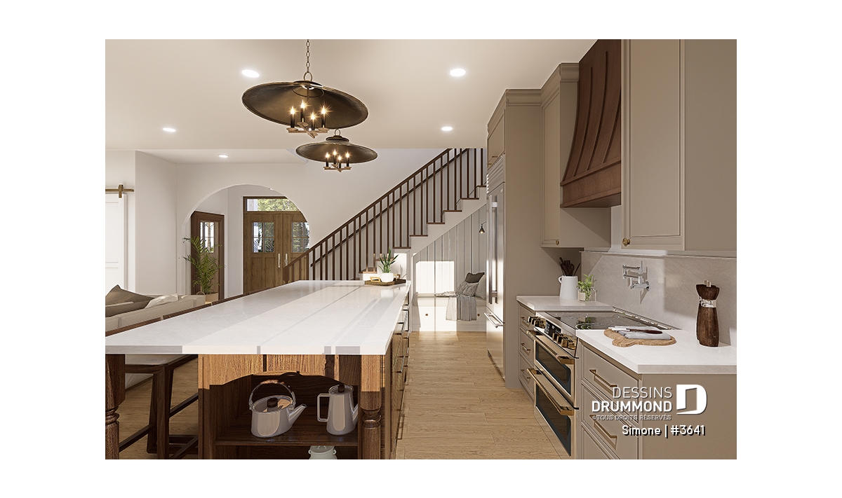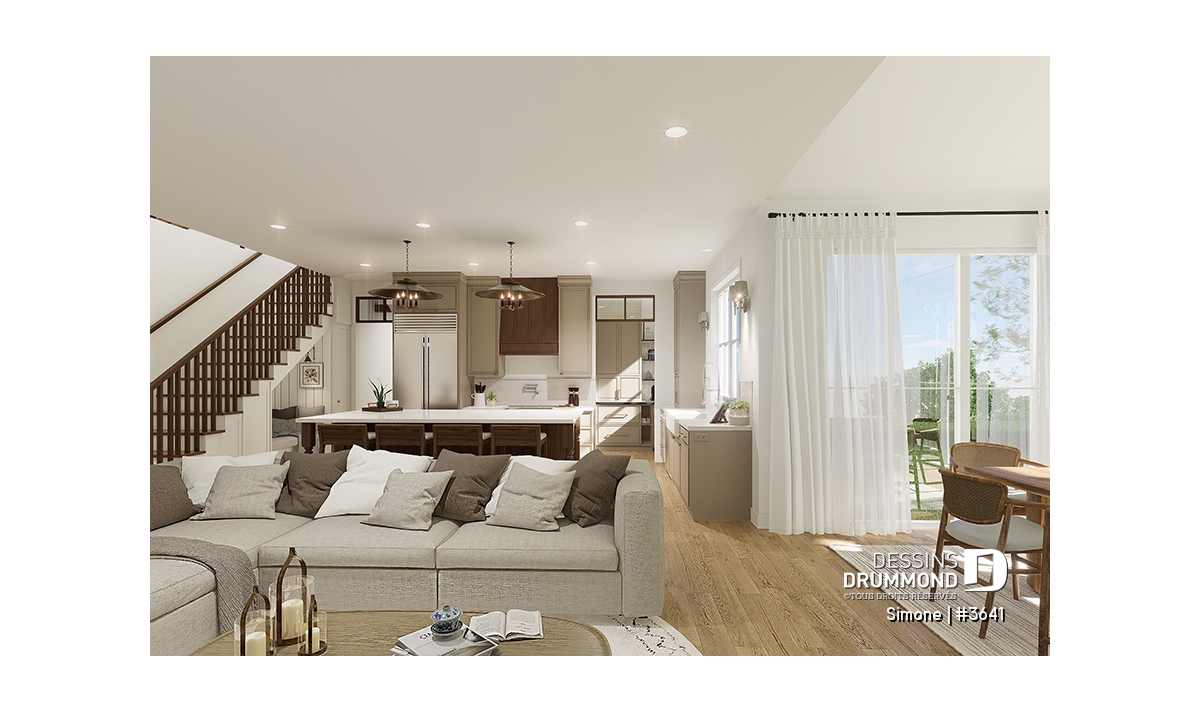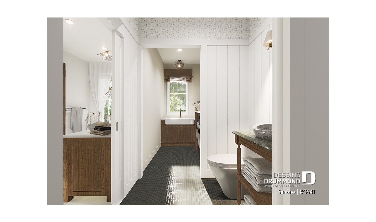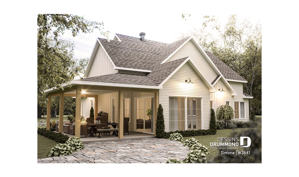 Le plan de maison SIMONE (#3641) offre un grand 2528 pi.ca. d'espace, aménagé sur 2 planchers. La fondation initiale prévue est une dalle flottante. Il est à noter que tous nos plans offrent plusieurs types de fondation.