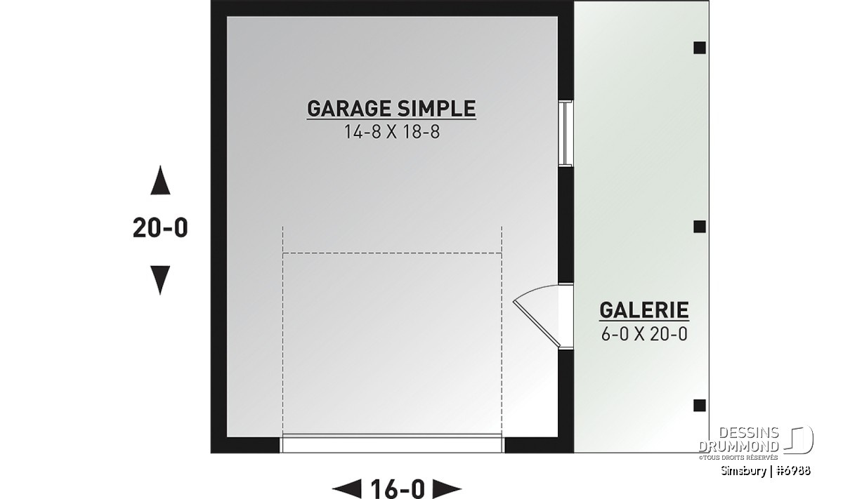 | Largeur | 16'0" | Profondeur | 20'0" |