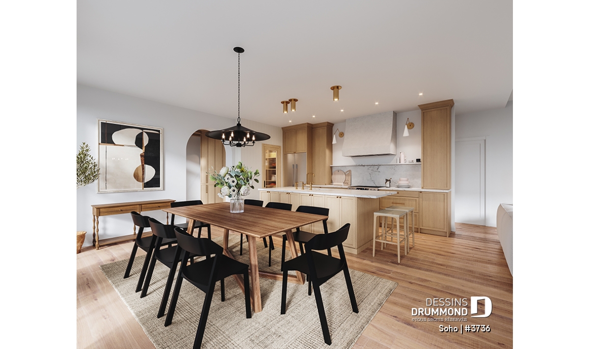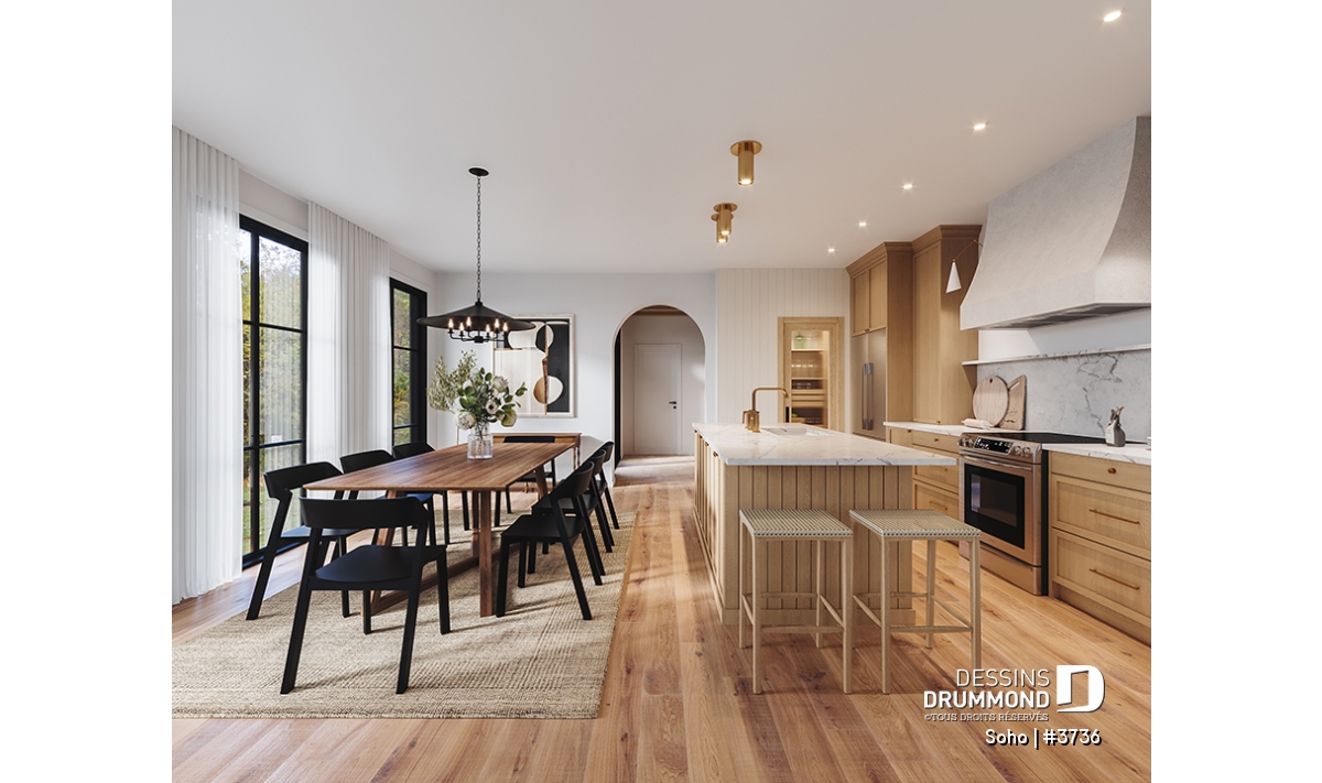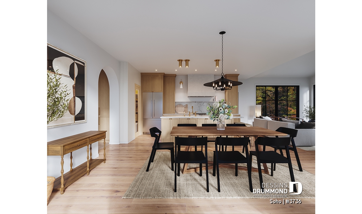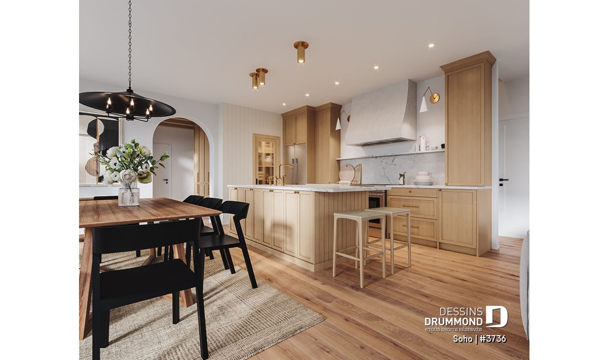 Belle arche entre l'entrée principale et le secteur cuisine / salle à manger.