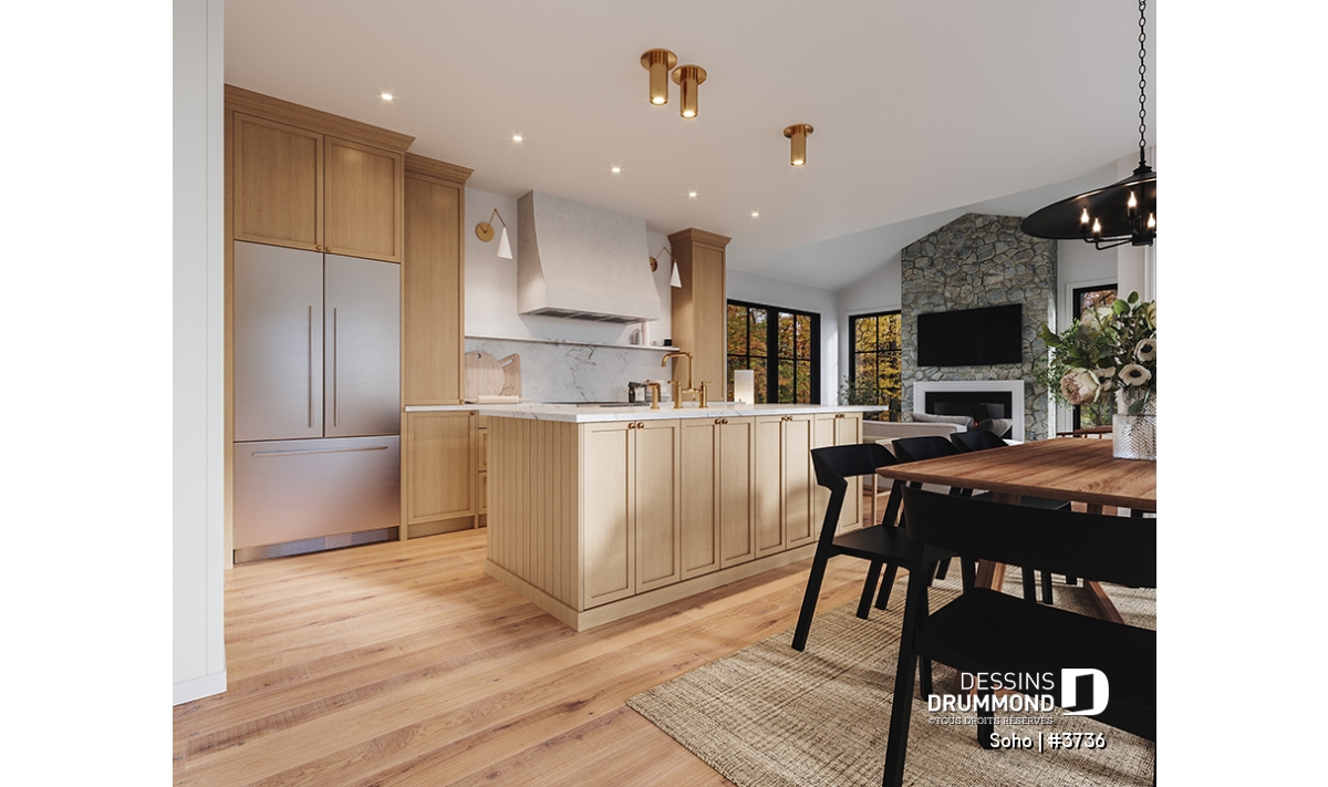 Maison de style transitionnel à aire ouverte, suite des parents au rez-de-chaussée, bureau à l'étage