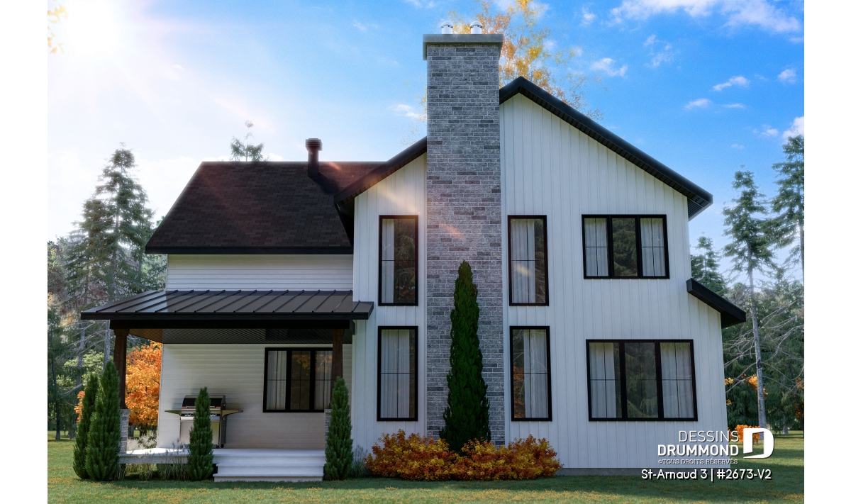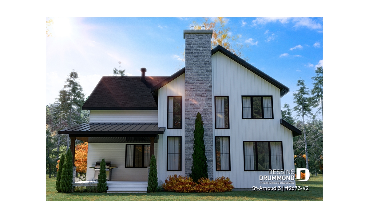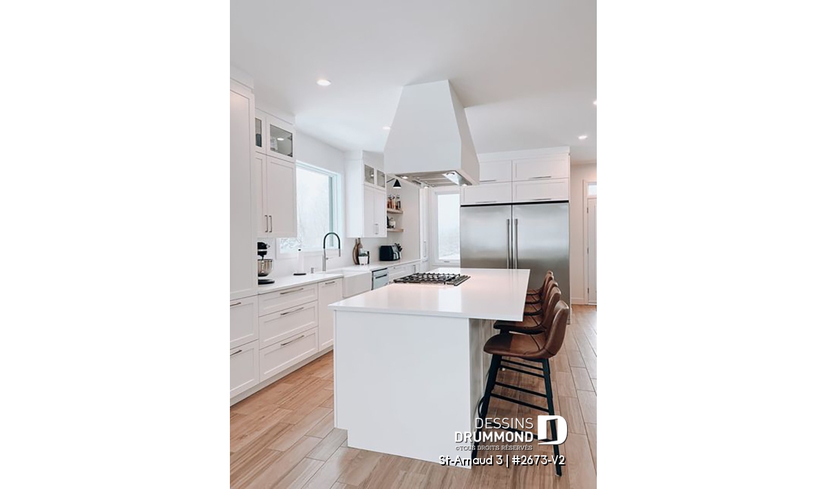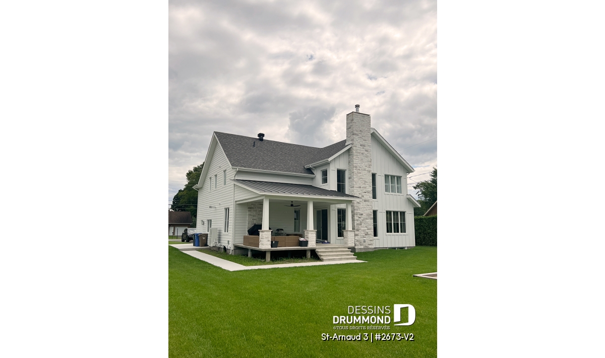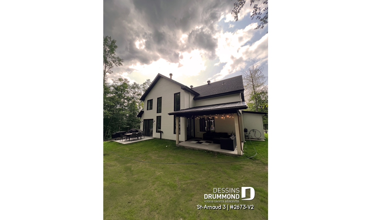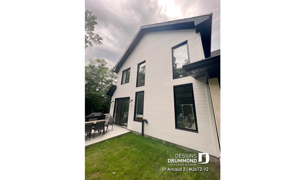 La mezzanine ouverte donnant sur la salle familiale accentue le volume et la luminosité de l’espace. Un garage double offre un accès direct et pratique à la maison. Enfin, un sous-sol à aménager selon vos besoins et plusieurs options de fondations permettent d’adapter ce plan à votre style de vie et à votre terrain.