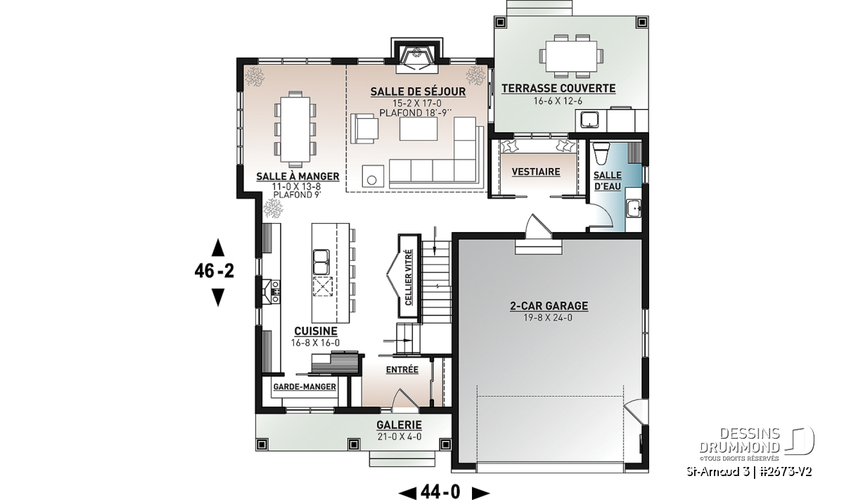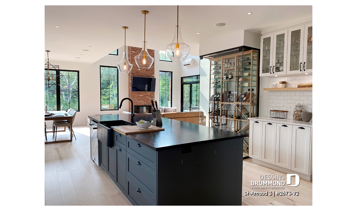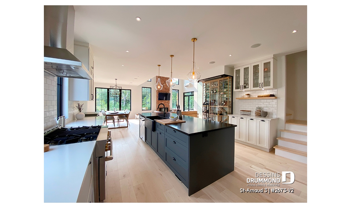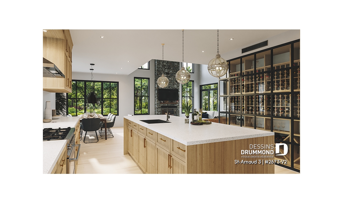 Vestiaire, Garde-manger, Ilôt, Vue paronamique, Foyer, Mezzanine, Plafond cathédrale, Salle de lavage à l'étage, Suite des maîtres à l'étage, Walk-in ch. maîtres, Terrasse abritée, Cellier, Lavabo double