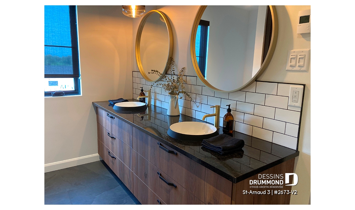 Suite des parents spacieuse avec double lavabo, grande douche et walk-in de généreux format, conjuguant confort et intimité.