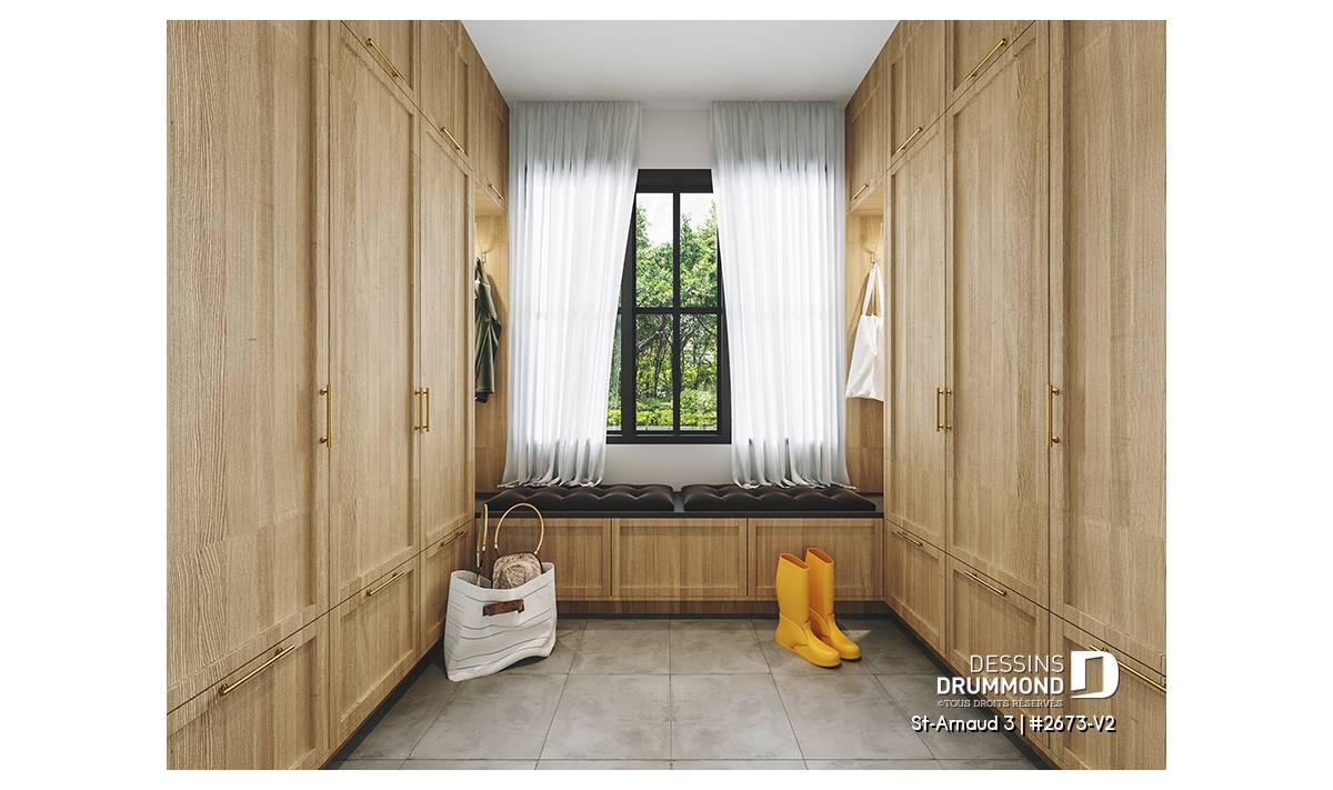 Coin vestiaire pratique, situé près de l’entrée du garage pour simplifier l’organisation au quotidien.