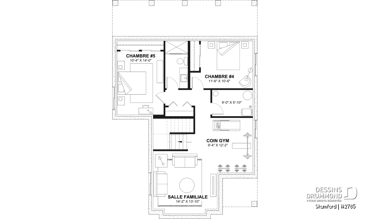 *Si vous souhaitez acheter le plan du sous-sol aménagé, tel que présenté sur la page de ce plan, veuillez sélectionner cette option dans le panier d'achat, dans la section "Sélectionner votre fondation". Si vous ne sélectionnez pas cette option, vous recevrez le sous-sol non fini, sans frais additionnel.