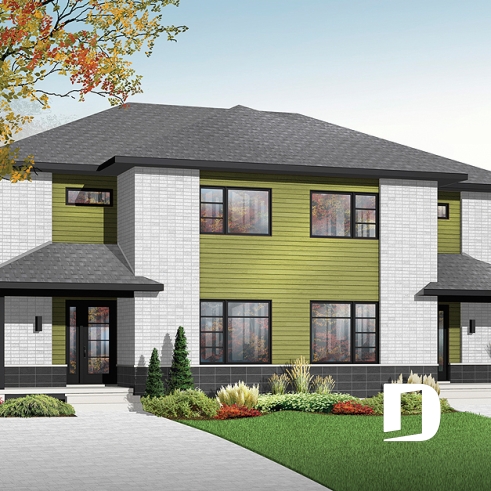 Conçu à partir du déjà très populaire plan 3710, ce plan de jumelé au style contemporain offre des possibilités de nuances tant à l’extérieur qu’à l’intérieur pour tous ceux désireux d’apporter leur grain de sel... De plus, sa conception simplifiée (volumes limités, toiture basse et absence de pignon) permet d’offrir plus de pi2 habitables et donc plus de confort pour un même prix.