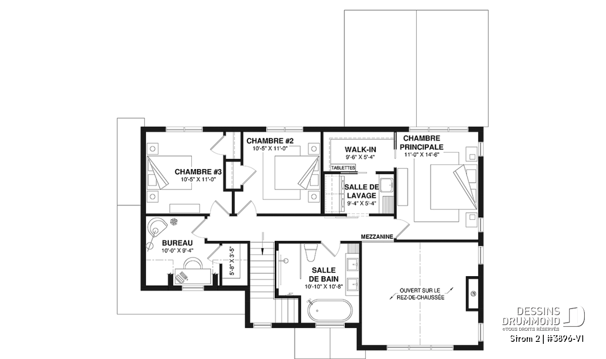 *Si vous souhaitez acheter le plan du sous-sol aménagé, tel que présenté sur la page de ce plan, veuillez sélectionner cette option dans le panier d'achat, dans la section "Sélectionner votre fondation". Si vous ne sélectionnez pas cette option, vous recevrez le sous-sol non fini, sans frais additionnel.