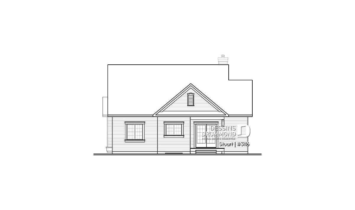 Vue avant - MODÈLE DE BASE - Plan de plain-pied champêtre, 2 chambres, foyer au salon, belle cuisine, salle de lavage au rez-de-chaussée - Stuart