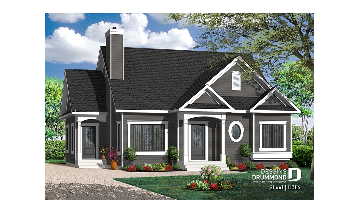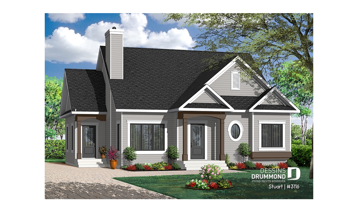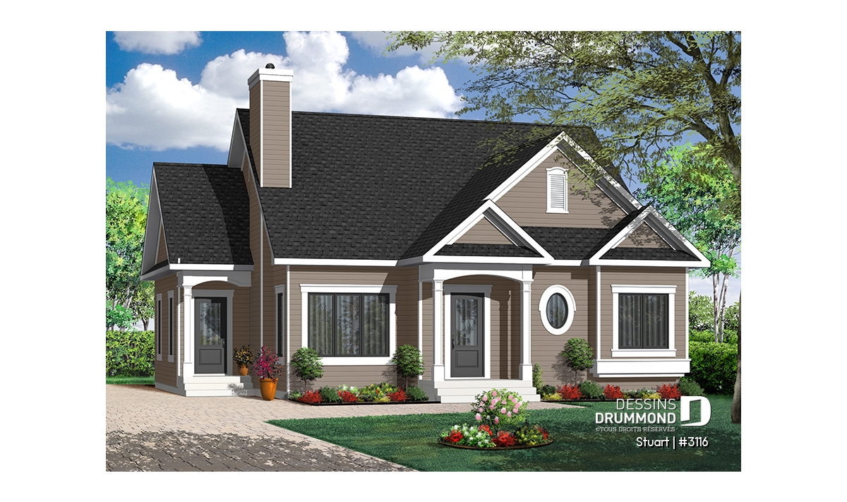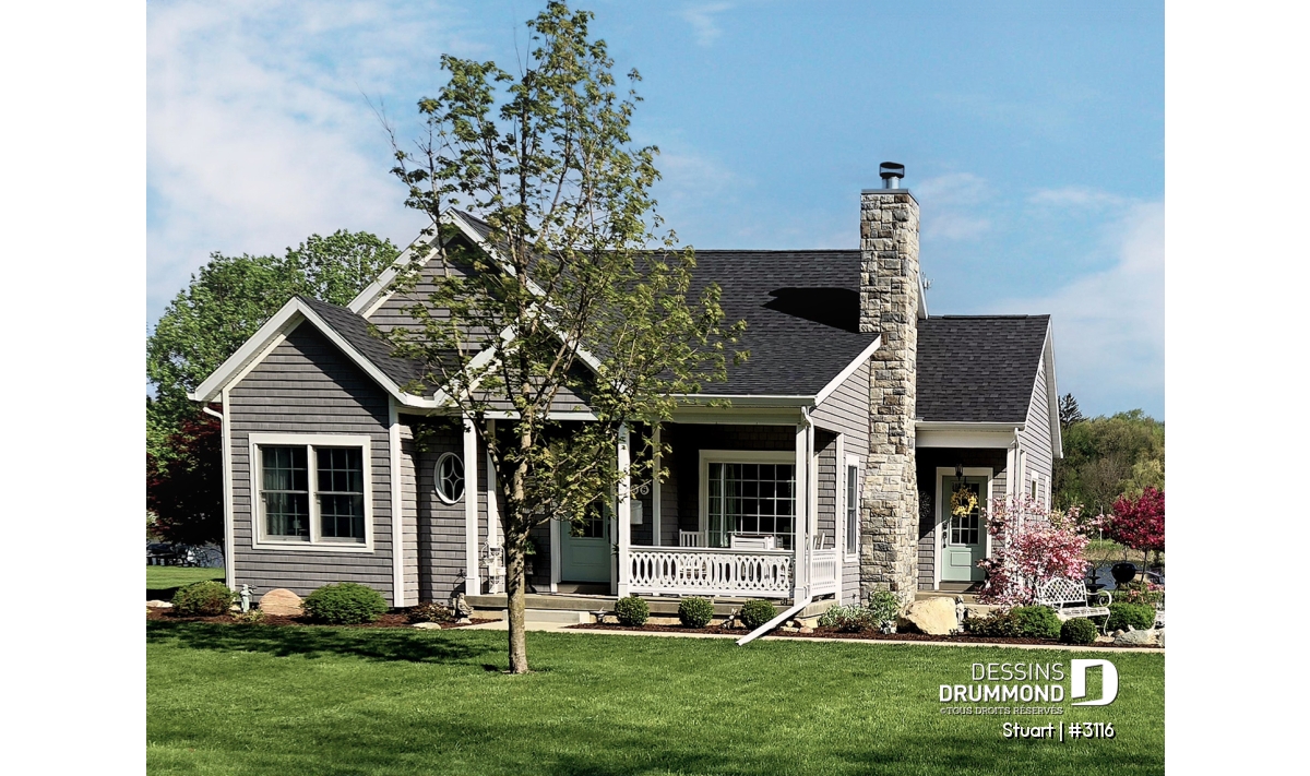 Version couleur no. 2 - Vue avant - Plan de plain-pied champêtre, 2 chambres, foyer au salon, belle cuisine, salle de lavage au rez-de-chaussée - Stuart