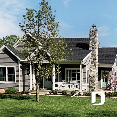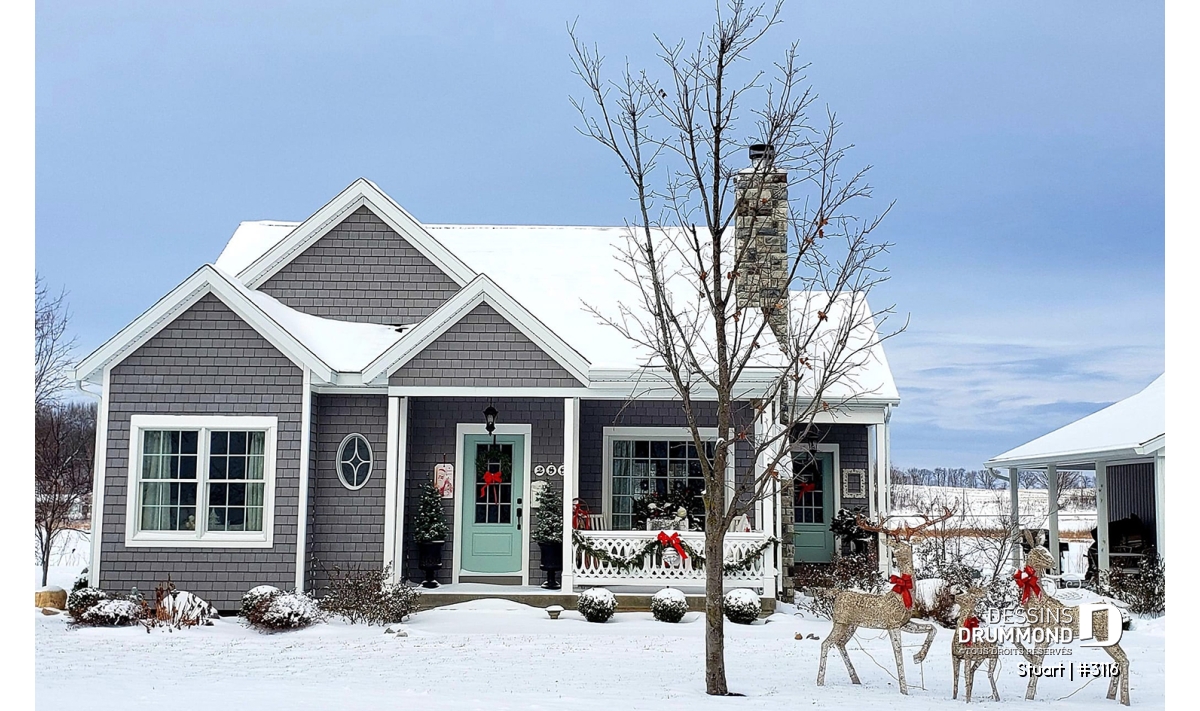 Version couleur no. 4 - Vue avant - Plan de plain-pied champêtre, 2 chambres, foyer au salon, belle cuisine, salle de lavage au rez-de-chaussée - Stuart