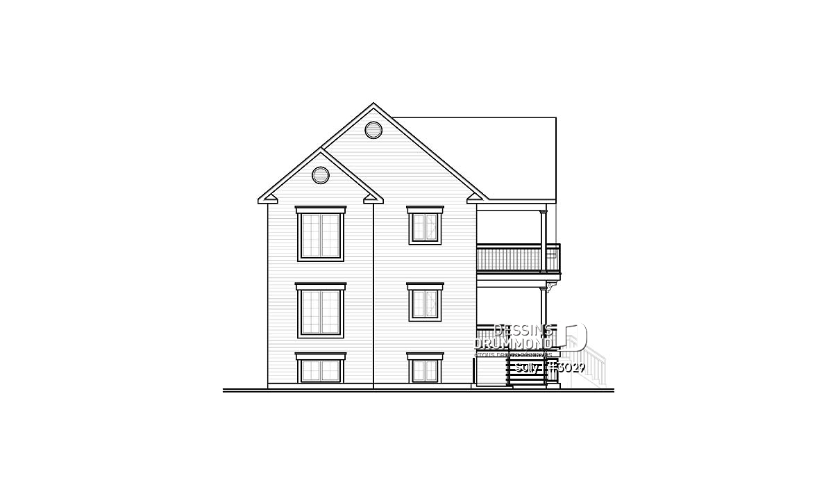 Fenestration abondante, entrée avant abritée, balcons arrière abrités.