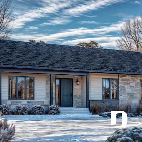 Plain-pied de style ranch, chaleureux et intemporel, rehaussé d’une belle touche de pierre en façade et d’un choix de couleurs sobres qui accentuent son charme classique.