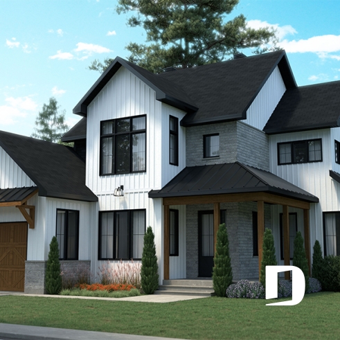 Le modèle Sunny Haven (#3615) incarne une vision chaleureuse et contemporaine du style Farmhouse moderne. Pensée pour offrir un équilibre harmonieux entre convivialité, fonctionnalité et esthétique intemporelle, cette maison séduit par ses volumes bien proportionnés et ses espaces de vie conçus pour le quotidien des familles d’aujourd’hui.