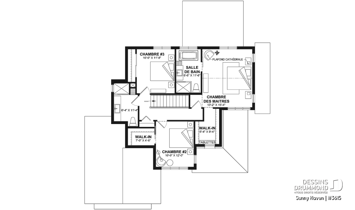 À l’étage, la suite des parents offre un véritable refuge avec son plafond cathédral, sa salle de bain privée et son walk-in. Deux chambres additionnelles bien proportionnées partagent une salle de douche fonctionnelle, assurant confort et polyvalence. Le sous-sol à aménager ouvre la porte à de multiples possibilités futures, tandis que le garage simple mais spacieux complète ce plan pensé pour durer. Sunny Haven (#3615) est une maison où il fait bon vivre, évoluer et créer des souvenirs.