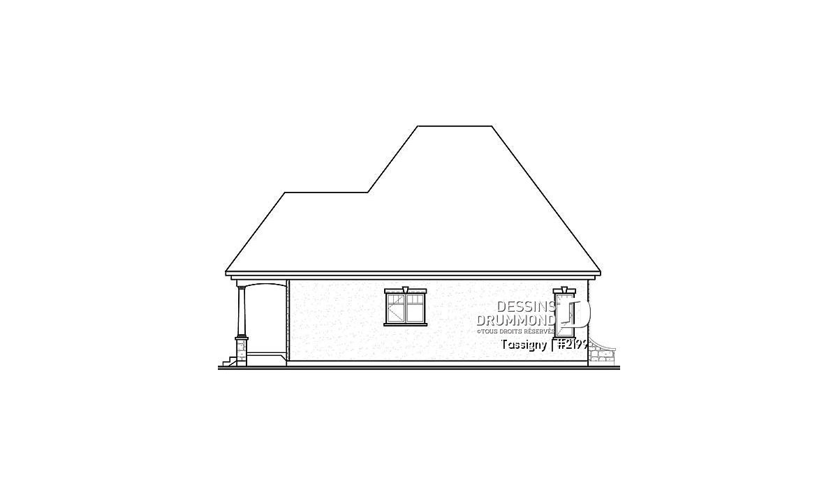 Vue avant - MODÈLE DE BASE - Petit bungalow style manoir conçu pour baby-boomer, une seule chambre et terrasse couverte - Tassigny